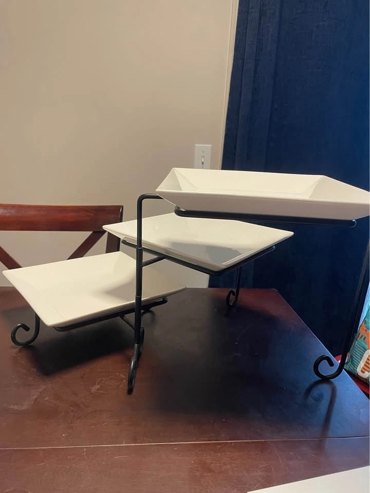 Perfect for home parties like baby showers, bake-offs, birthday parties, family-style dinners, or even your catering business. The black coated steel plate holder is great for presenting your delicious food. All plates are durable ceramic and microwave and dishwasher safe for easy cleaning.