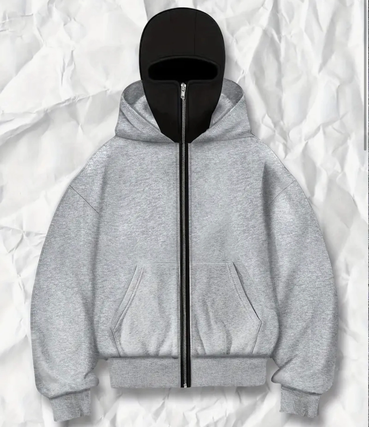 Stylish Hooded Zip-Up Sweatshirt with Double Hood - Casual Pullover with Drawstring, Long Sleeves, and Front Pockets, All-Season Comfort Fit, Casual Wear Hoodie | Trendy Casual Hoodie | Zippered Hoodie