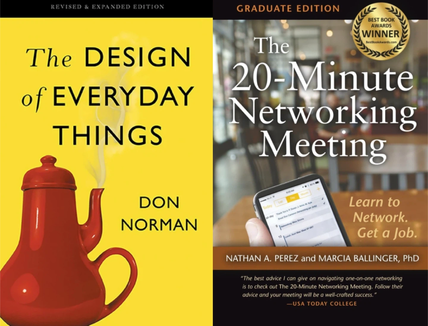 Selling 2 books: 1. 'The 20-Minute Networking Meeting' by Nathan A. Perez and Marcia Ballinger. 2. The Design of Everyday Things by Don Norman. These are like new only. Both for $20.