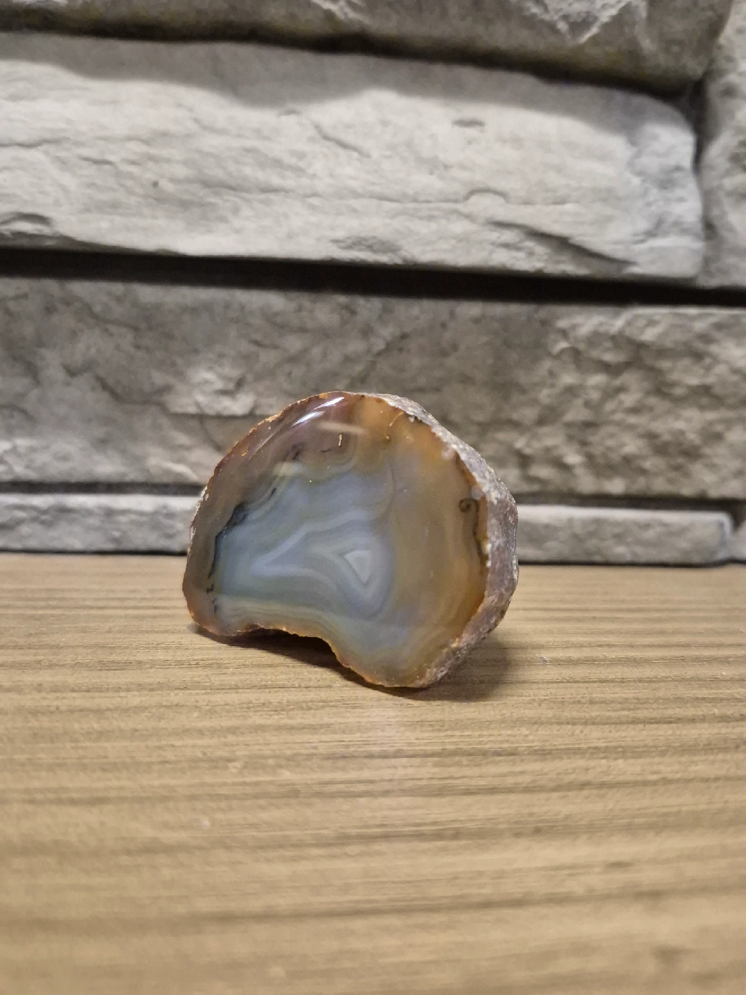 Here's a beautiful agate slice! It has lovely brown and grey bands. Perfect for display or collection Banded Botswana Agate Polished Slice +Raw Section