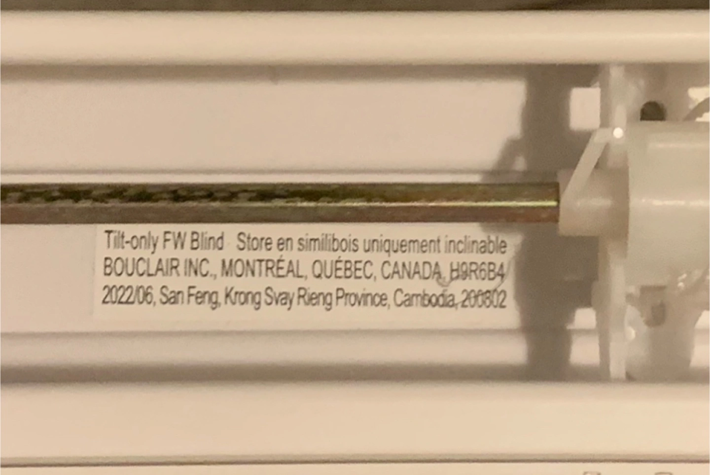 15Blind from Bouclair in great condition! Mounting hardware included. Blind is designed to be stationary — “Tilt-only” Size: 58 3/4 inches wide 48 inches long 2 inch slats Asking $30 —-///—-///—-///—-///—-///—- Check out my other ads for more great deals! Thanks for looking! —-///—-///—-///—-///—-///—-
