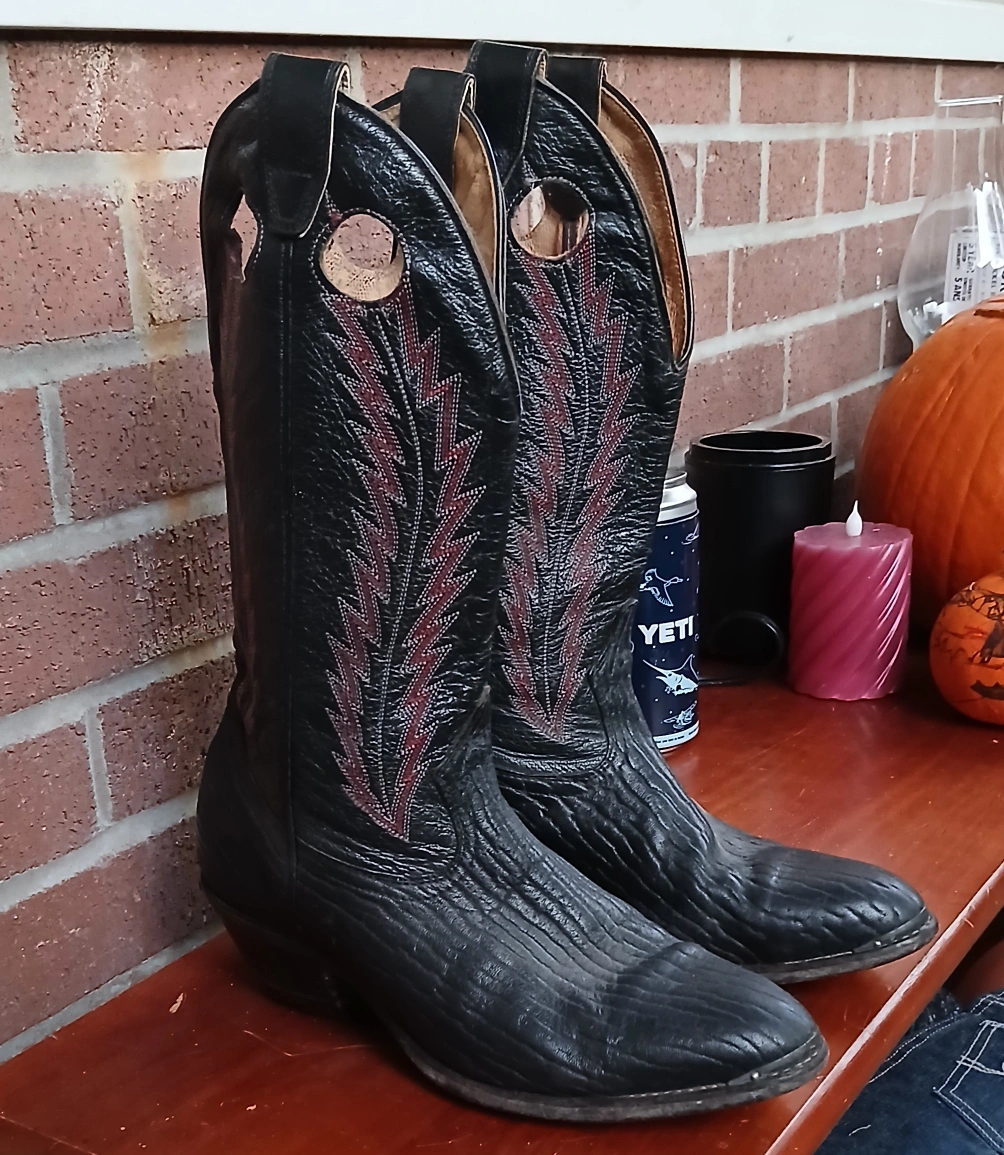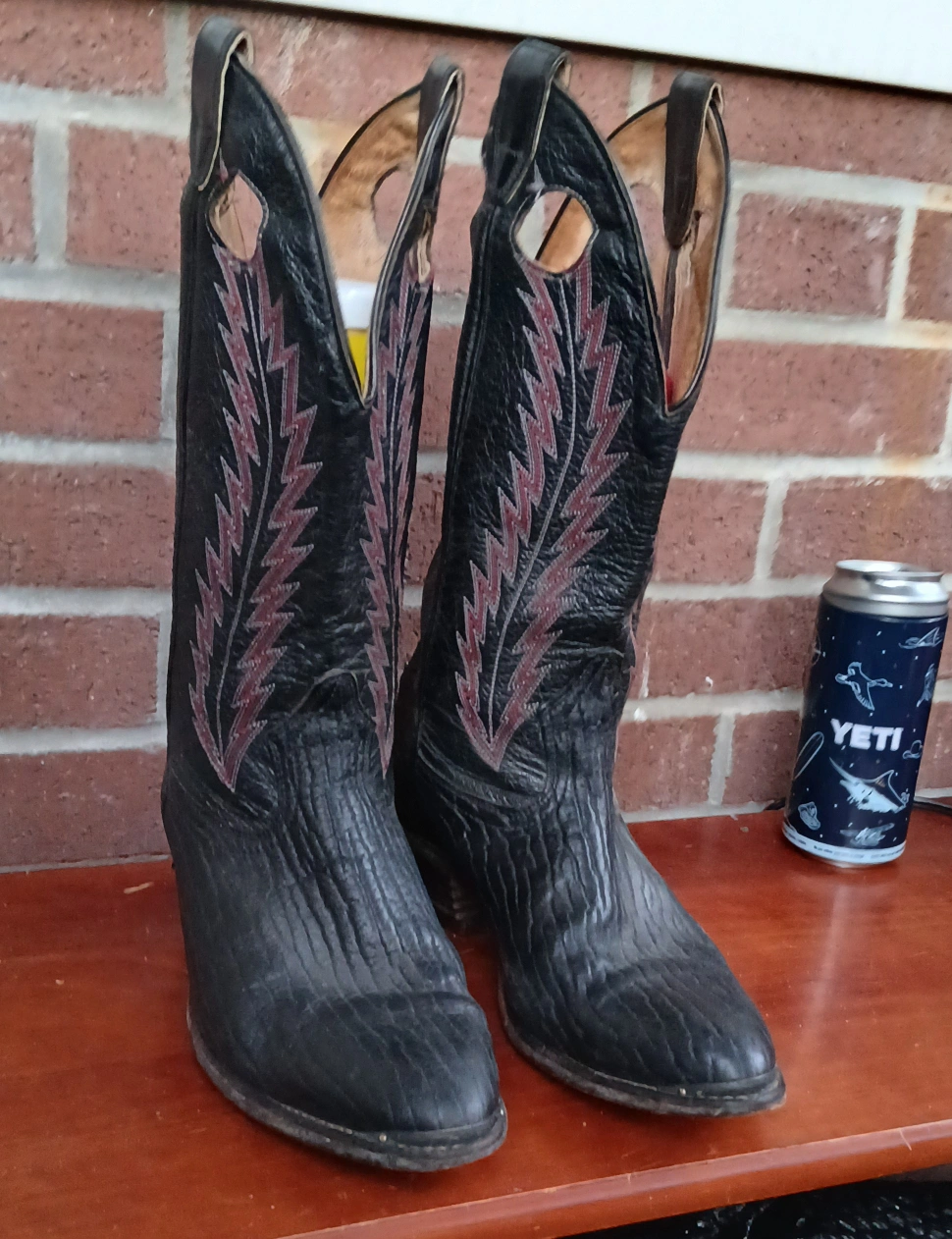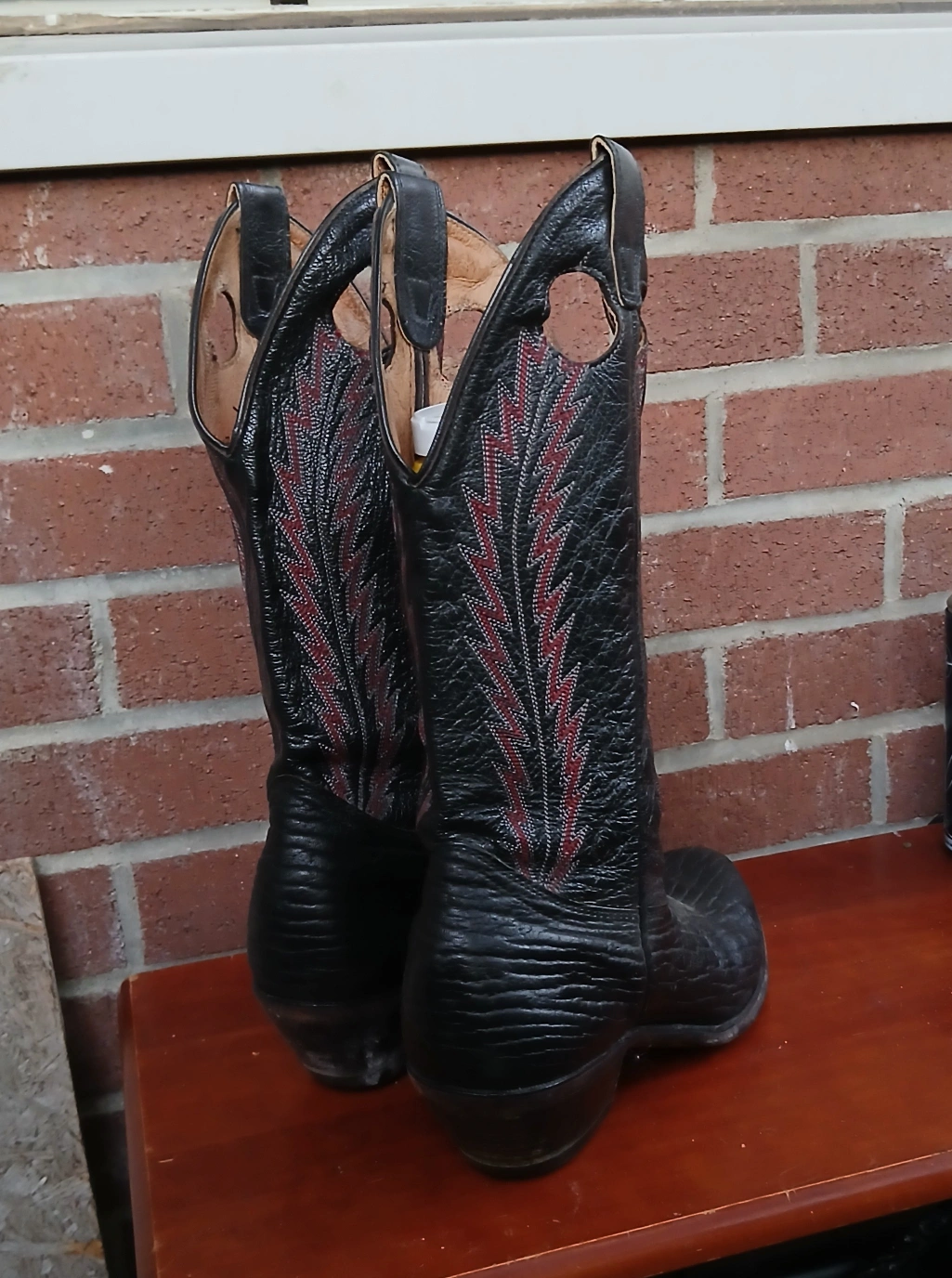 Selling a pair of Boulet cowboy boots in black leather. They are in used condition and size 7. Perfect for adding some western flair to your wardrobe!
