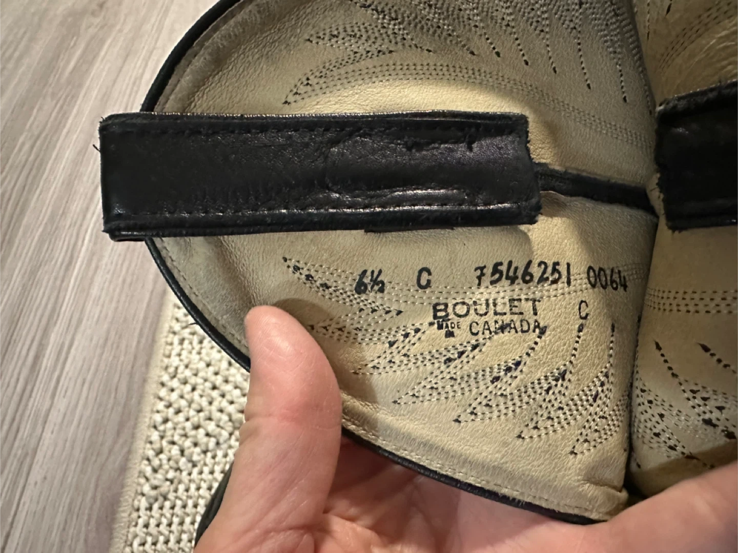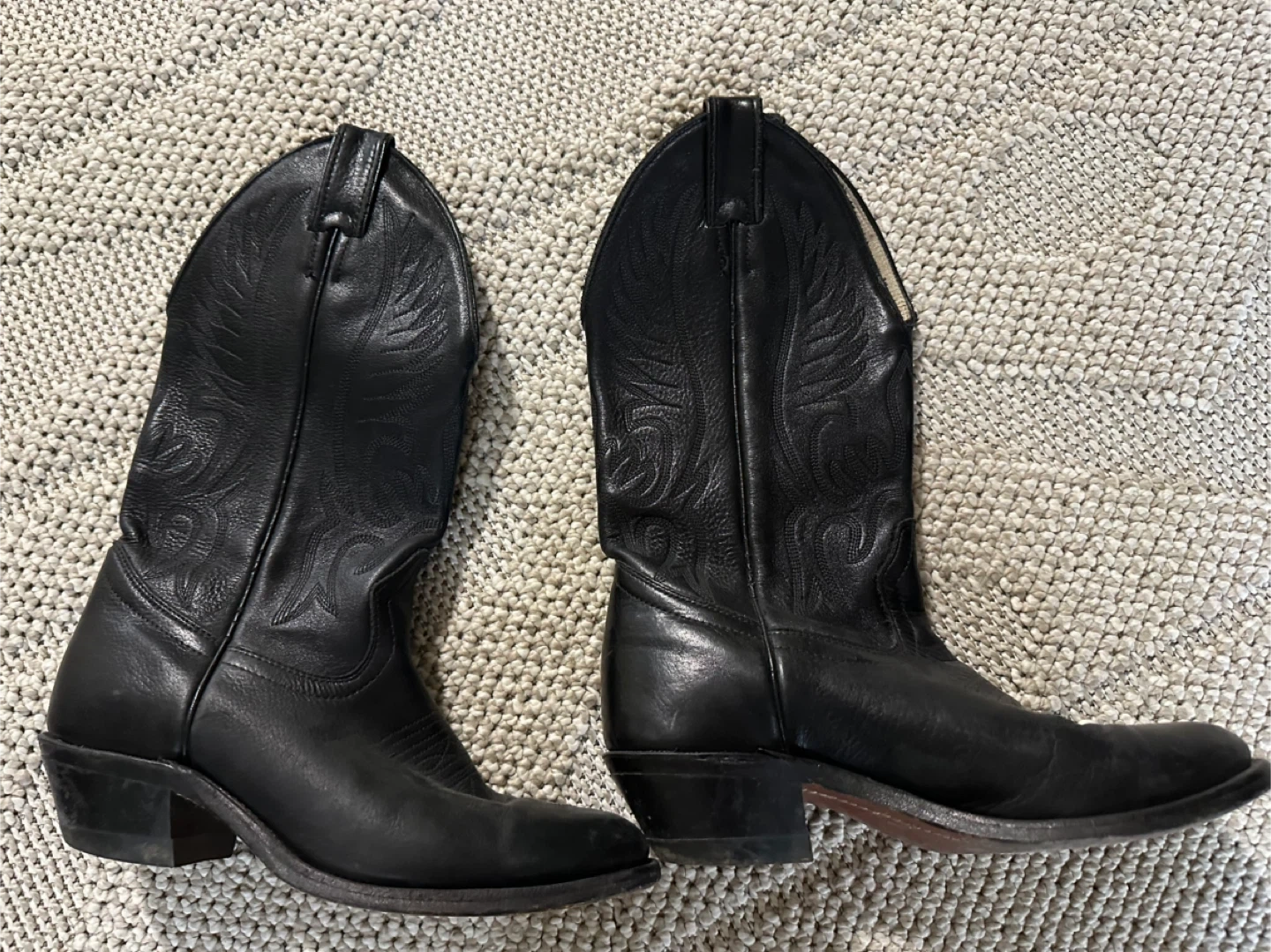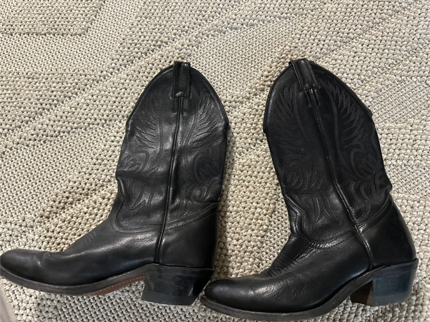 59Selling a pair of black Boulet Woman’s leather cowboy boots. Made by Boulet, a famous Canadian company with long history making cowboy boots. Retail price of similar boots cost more than $400! They show some signs of wear on the soles but are in otherwise good condition. Perfect for adding some western flair to your wardrobe! No damage no tear on leather Very soft and comfortable sole
