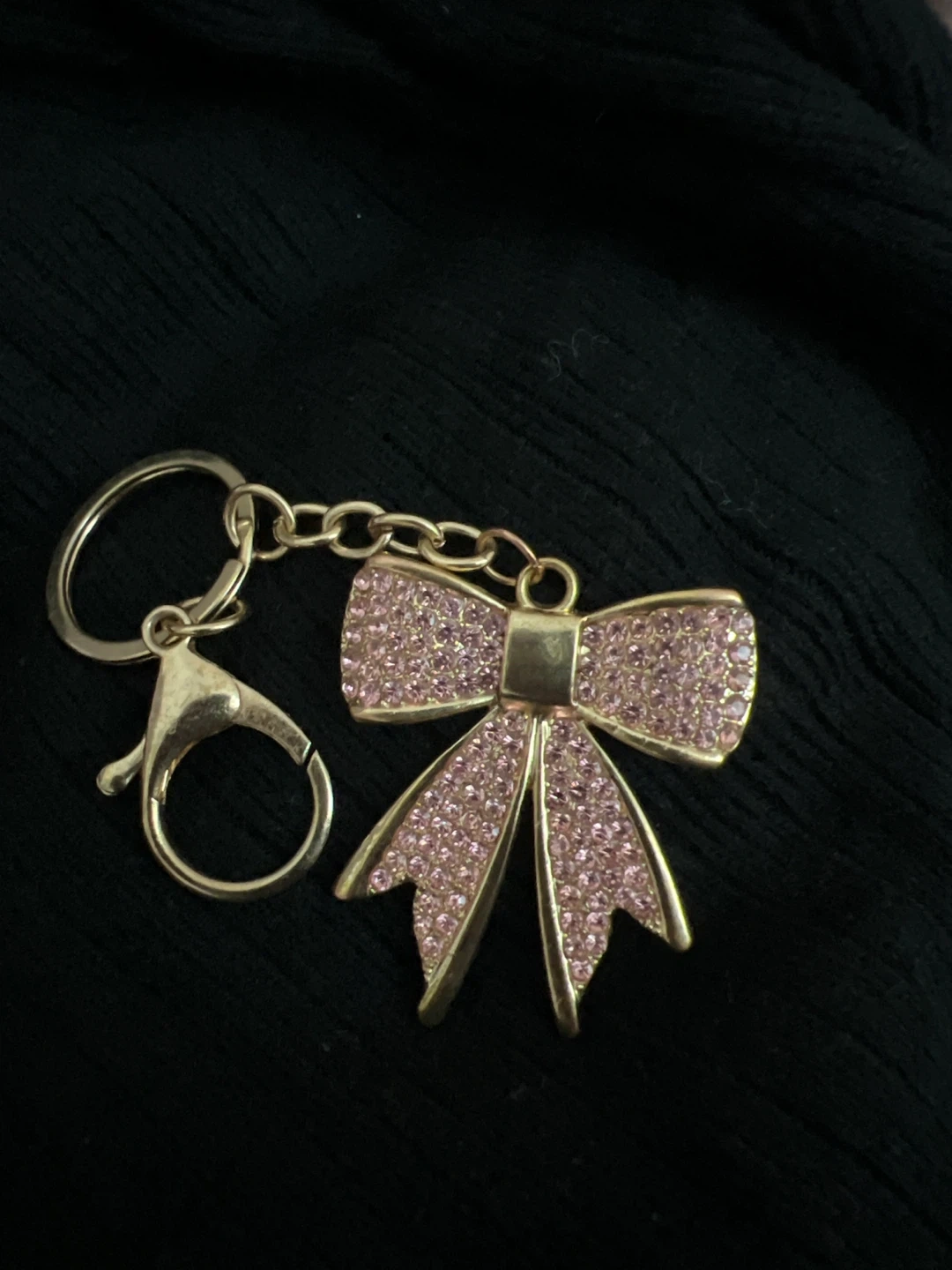 234Cute bow keychain in gold with pink accents! Gently used. Pickup at 33 Helendale Ave.