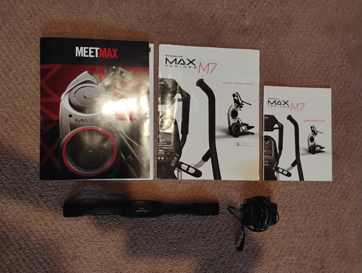 20Selling a Bowflex Max Trainer M7 elliptical machine. It comes with the owner's manual and quick start guide. Also included is the chest strap for heart rate monitoring and the power cord. Get a great workout at home! Only used a couple of times. Black scratches on the front of the machine, shown in pics.