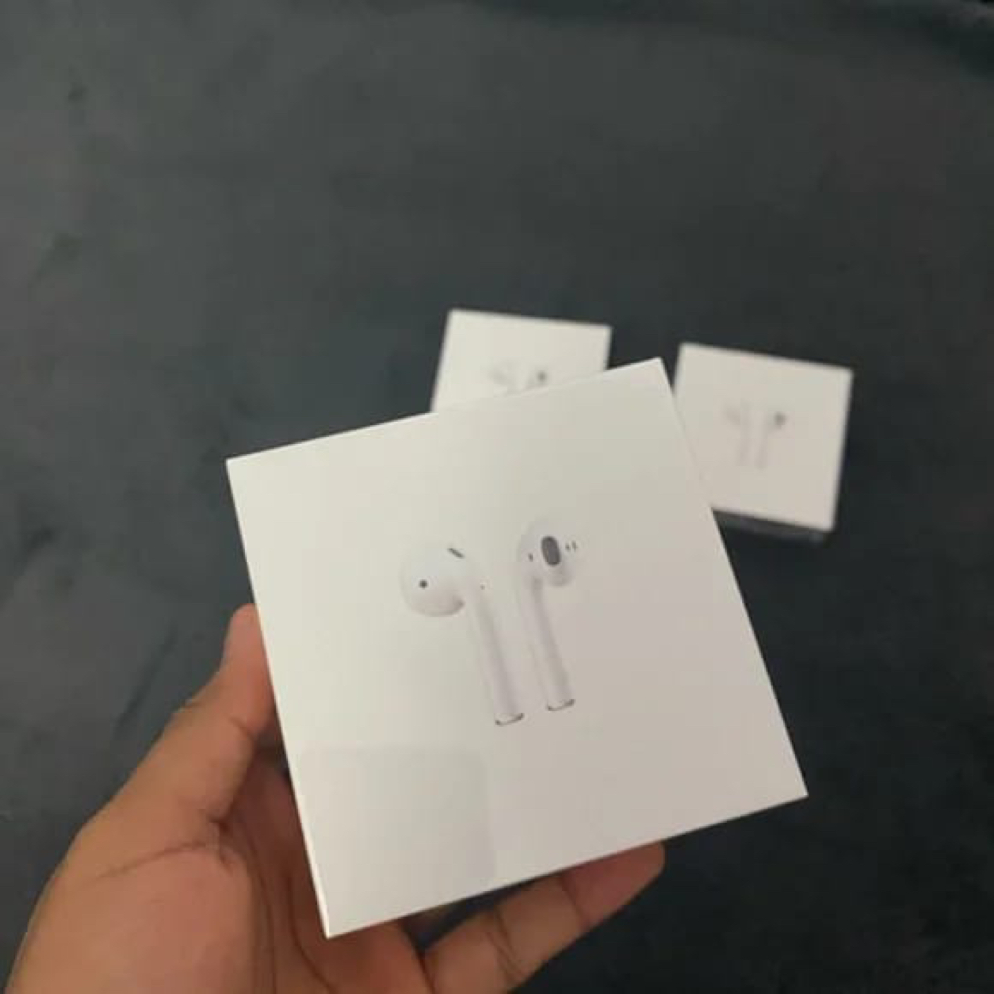 10Air pods 2nd generation in unpacked condition with charging case and cable