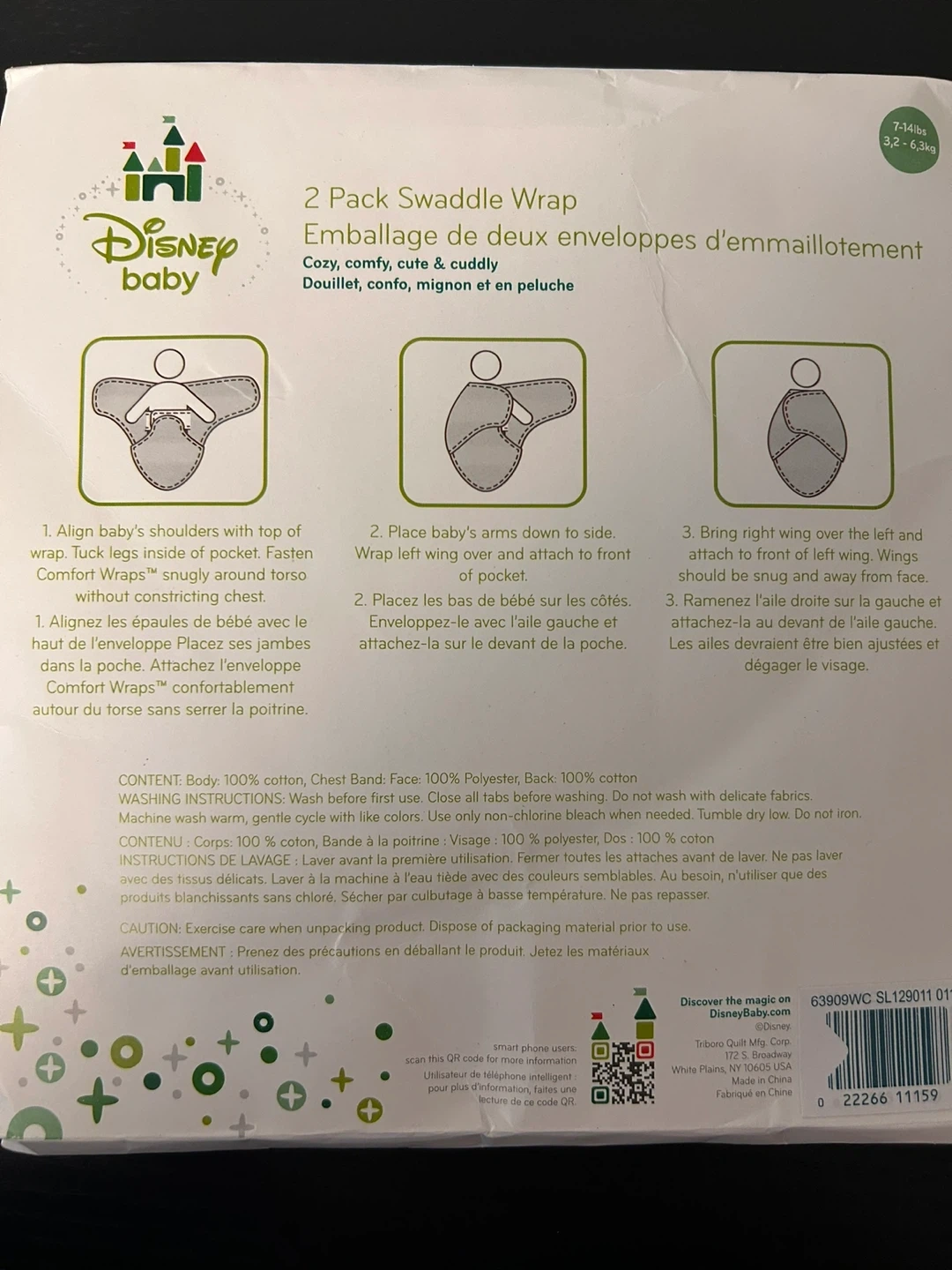 Disney Baby Swaddle Wrap – 2 Pack . 3-6 kg (7–14 lbs).