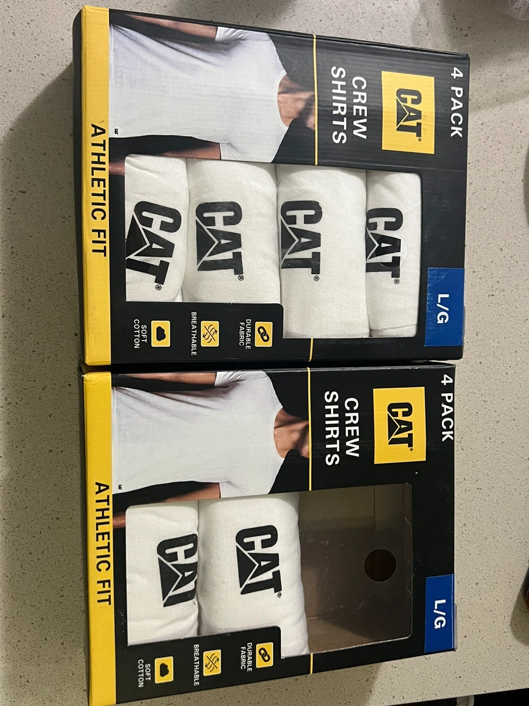 This is a 4-pack of Caterpillar crew shirts.They're made with soft cotton for a comfortable feel. The fabric is breathable and durable, offering an athletic fit. 6pc