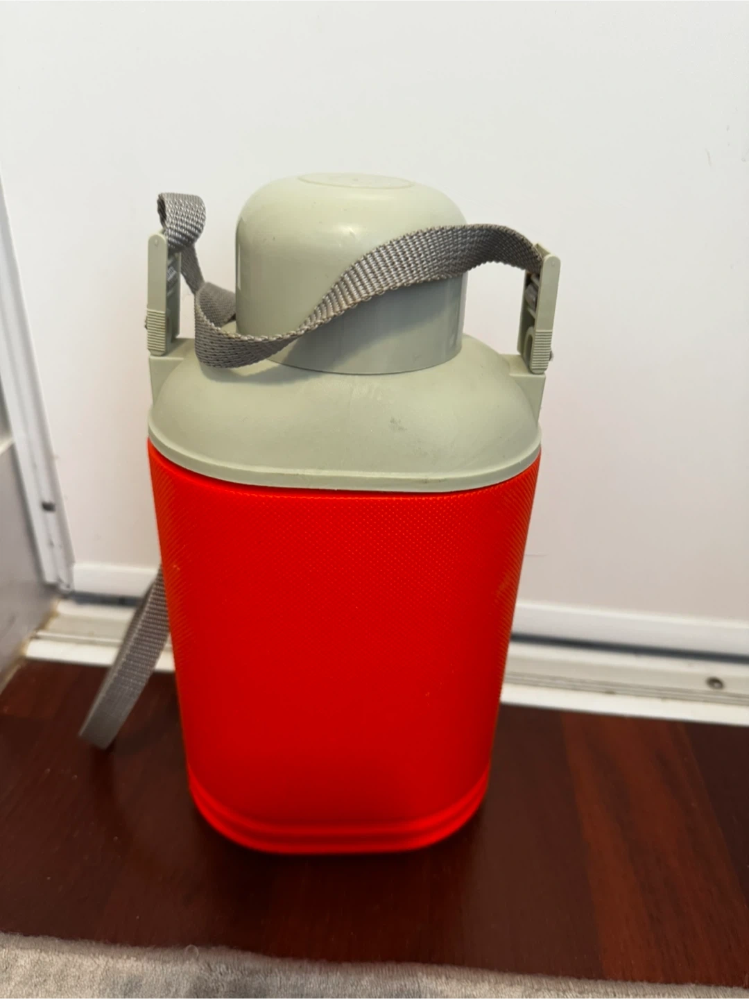 Here's a Boxter water jug, perfect for keeping your drinks cool on the go! It's in good condition and ready for a new home. The jug is red and grey with a convenient carrying strap $10 Yonge and finch area