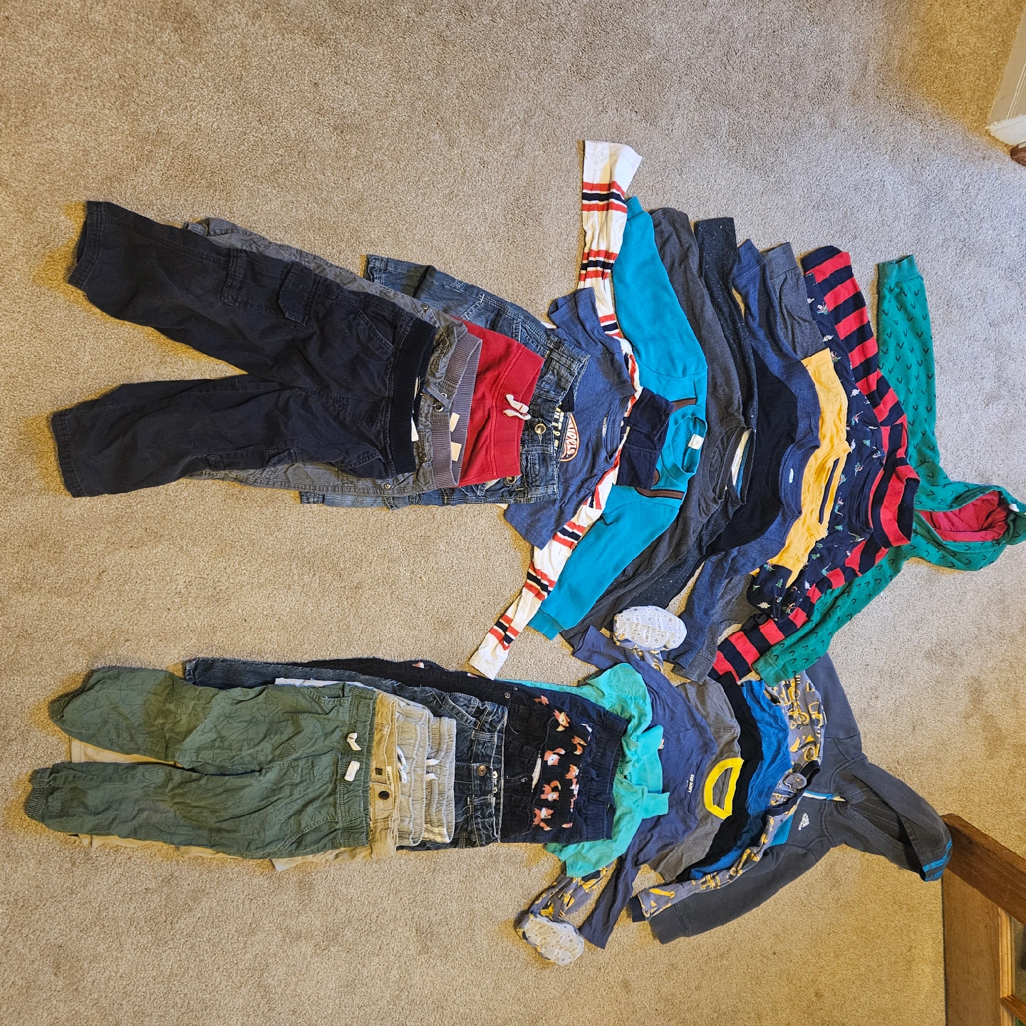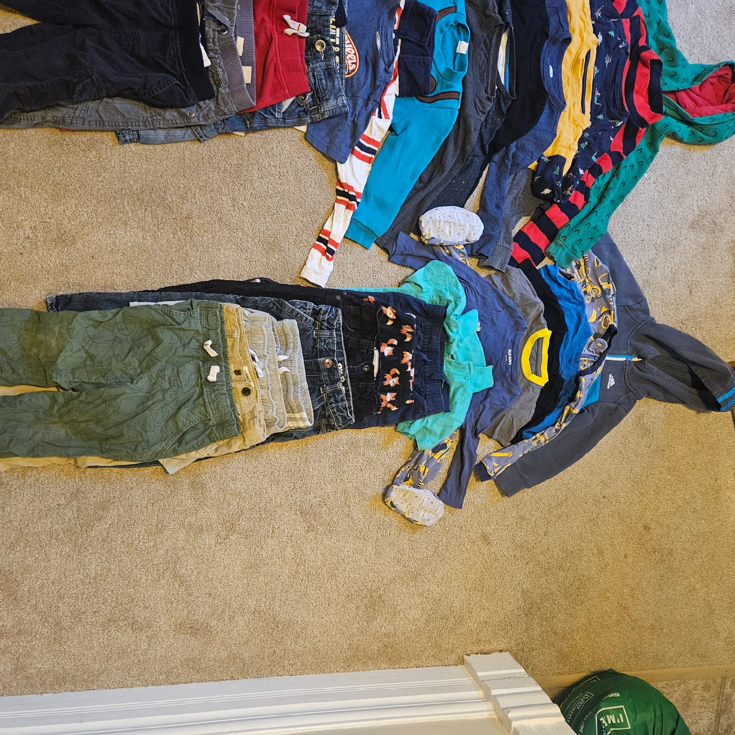28A mixed lot of boys clothing. There are a variety of sizes, colours and styles. Size 2T and 3T