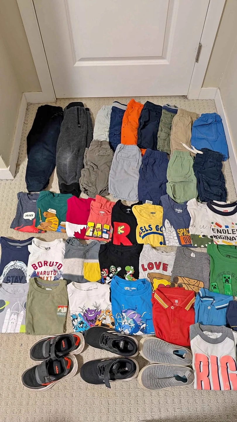 10All used. Mix of joggers, shorts, sleeveless shirts, long sleeve shirts, collared shirt, 4 pairs of shoes (including crocs). Brands include Uniqlo, Carters, Old Navy, H&M, Gap. Size is mix of 4T -5T, XS,S. Basically for 4-5+ yrs of age. Selling everything as a lot. Pick up Richmond
