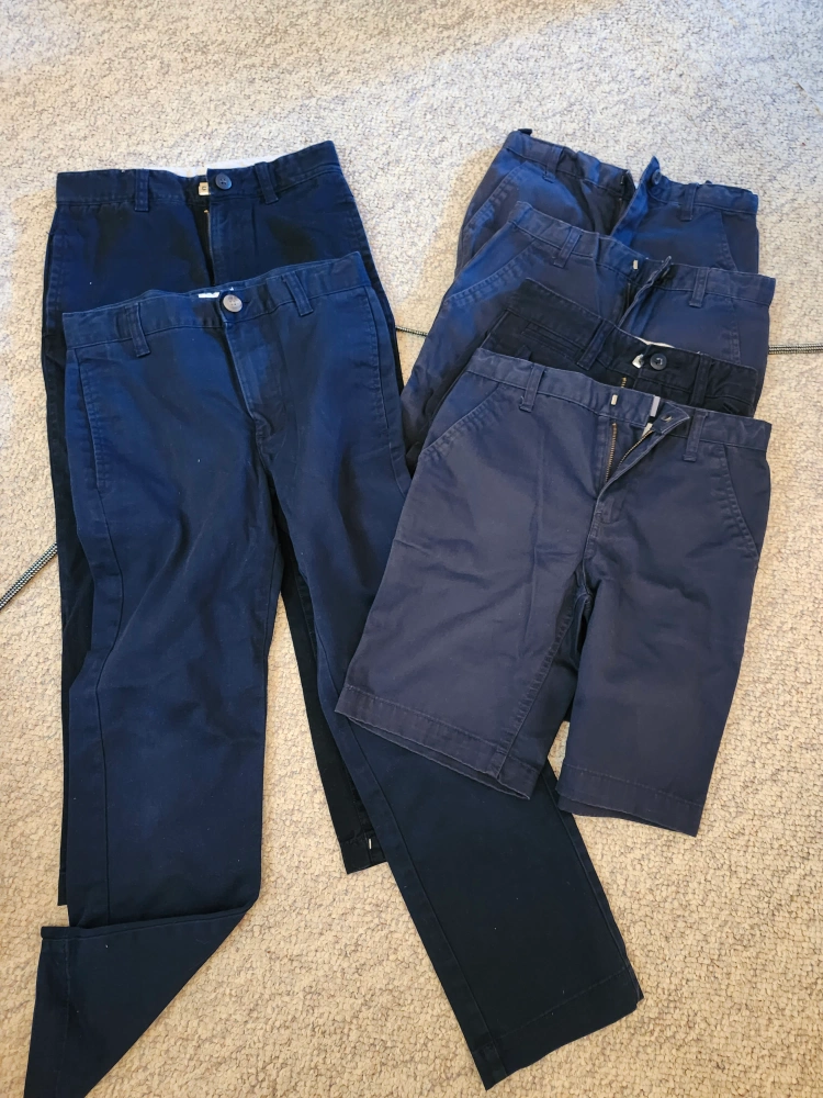 10Boys' pants and shorts in navy blue. Good condition for school uniform. 2 pants, 4 shorts. All size 7