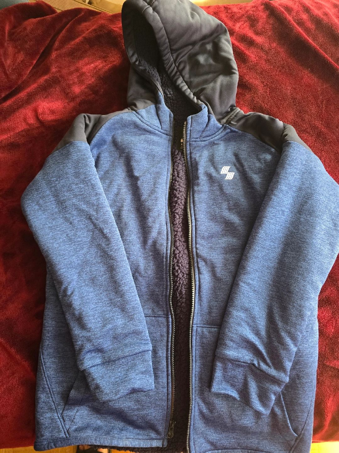 115Cozy blue fleece hoodie from Place Sport. It's a size XXL/TTG-16. Perfect for staying warm on chilly days!