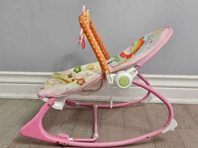 Gentle rocking motion to soothe baby, lightweight and easy to move around, secure seat with support. Clean and well maintained. Perfect for keeping baby relaxed and entertained.