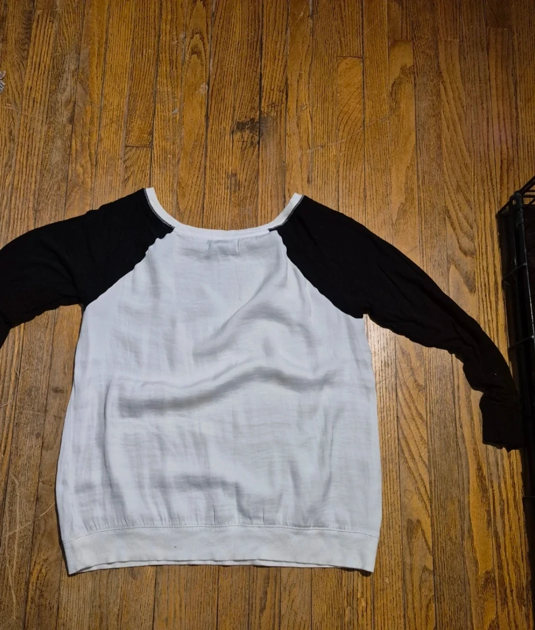 White body with black sleeves, this long-sleeved raglan t-shirt from Gap is a classic staple. It's made from a comfortable, breathable fabric. Crew neck style.