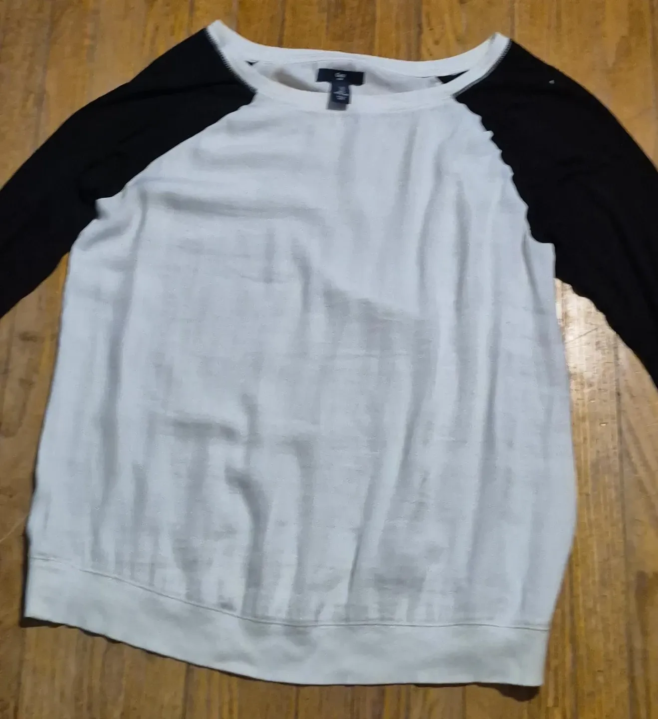 White body with black sleeves, this long-sleeved raglan t-shirt from Gap is a classic staple. It's made from a comfortable, breathable fabric. Crew neck style.