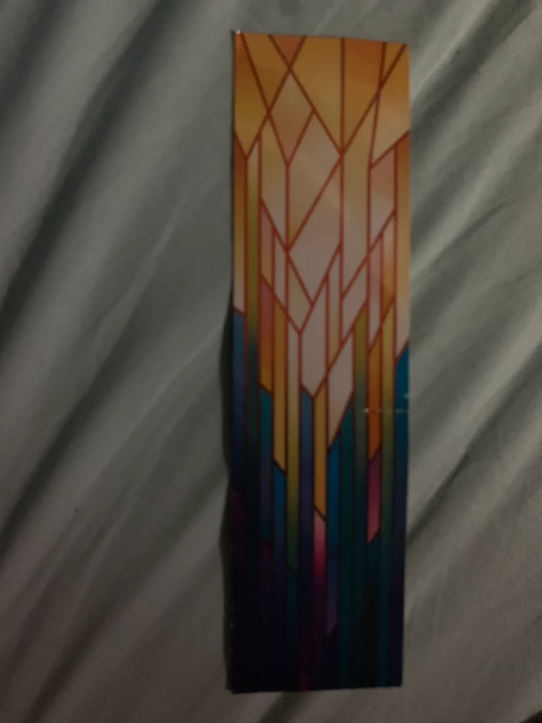 This decorative bookmark features a colourful stained-glass-inspired design. It's made of sturdy material to keep your place in any book. Perfect for any reader who appreciates a touch of art!