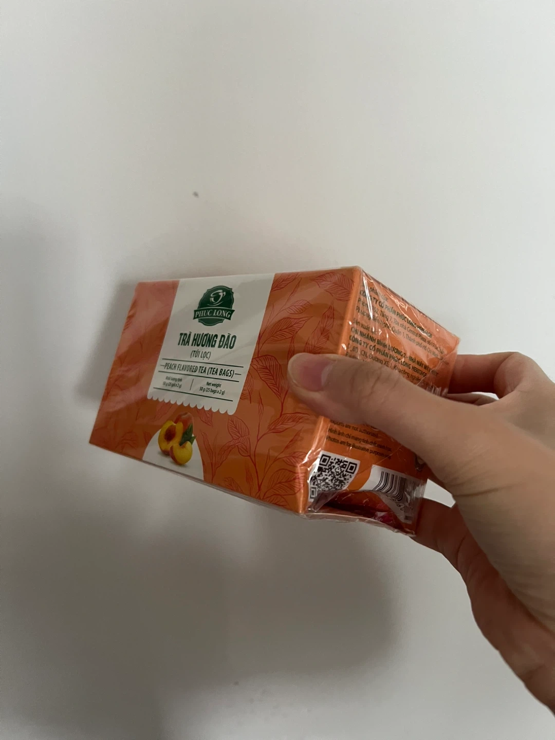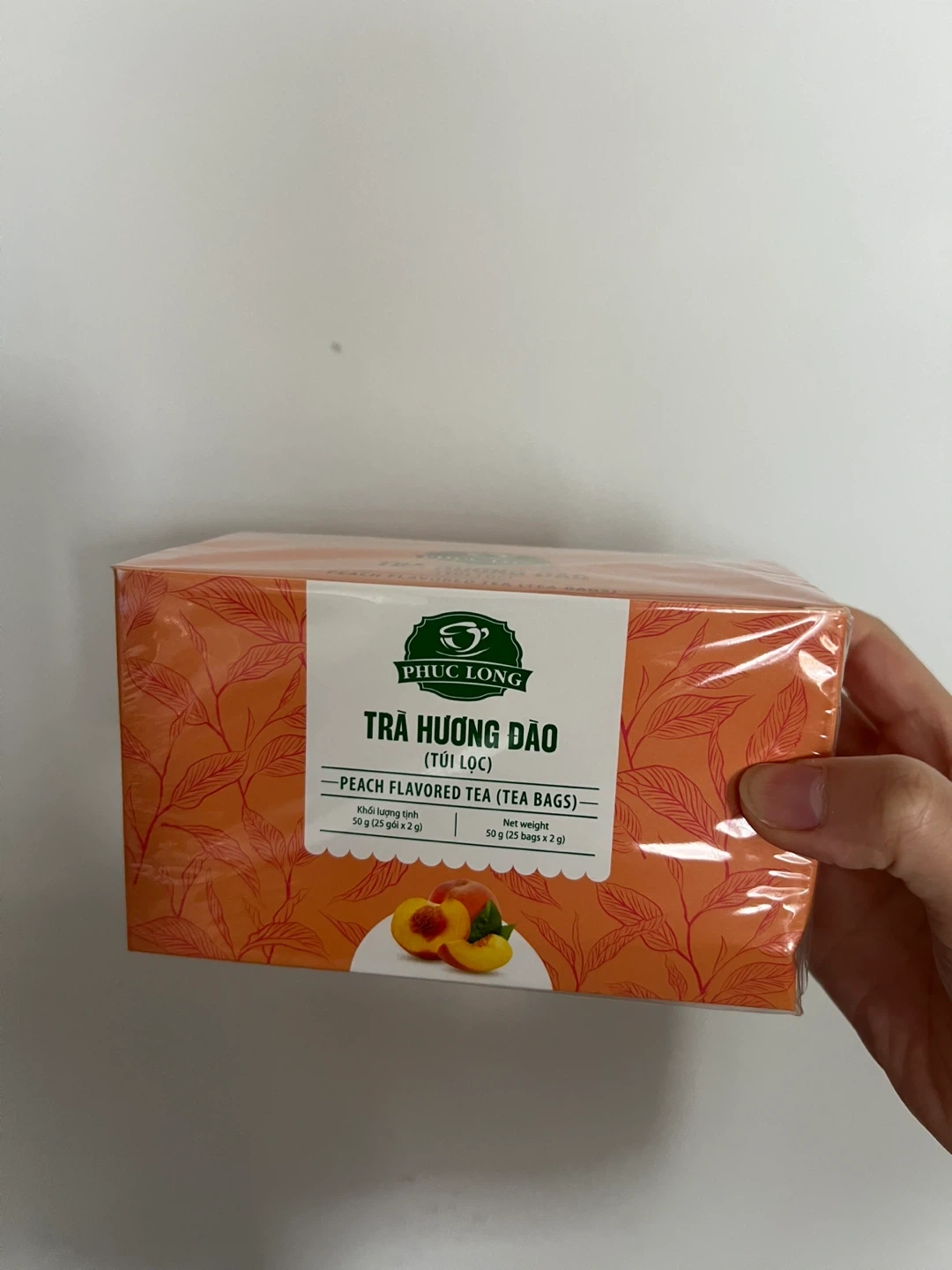 Phuc Long brand peach flavoured tea bags. Directly from Vietnam. Includes 50 tea bags. Brand new with packaging, just the box got dent.