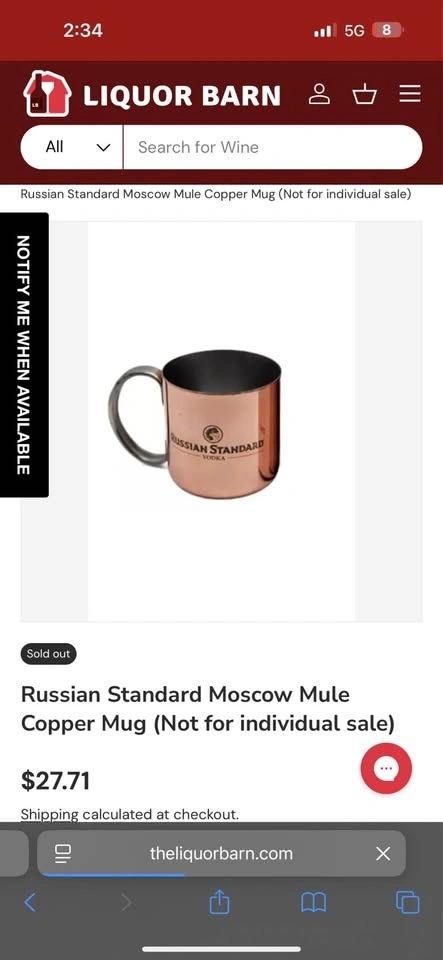 Buy & SellRussian Vodka Copper MugRussian Vodka Copper Mug$4860$ for 30 pieces .WHERE TO MEETCheck LocationView MapSELLERverifiedNasihFonthill600 reviews1 chats·0 favorites·157 viewsSEND CHAT TO SELLERHi Nasih! I’m interested in your listing.Hi Nasih! I’m interested in your listing.Get the Karrot app to chatSign In to chat