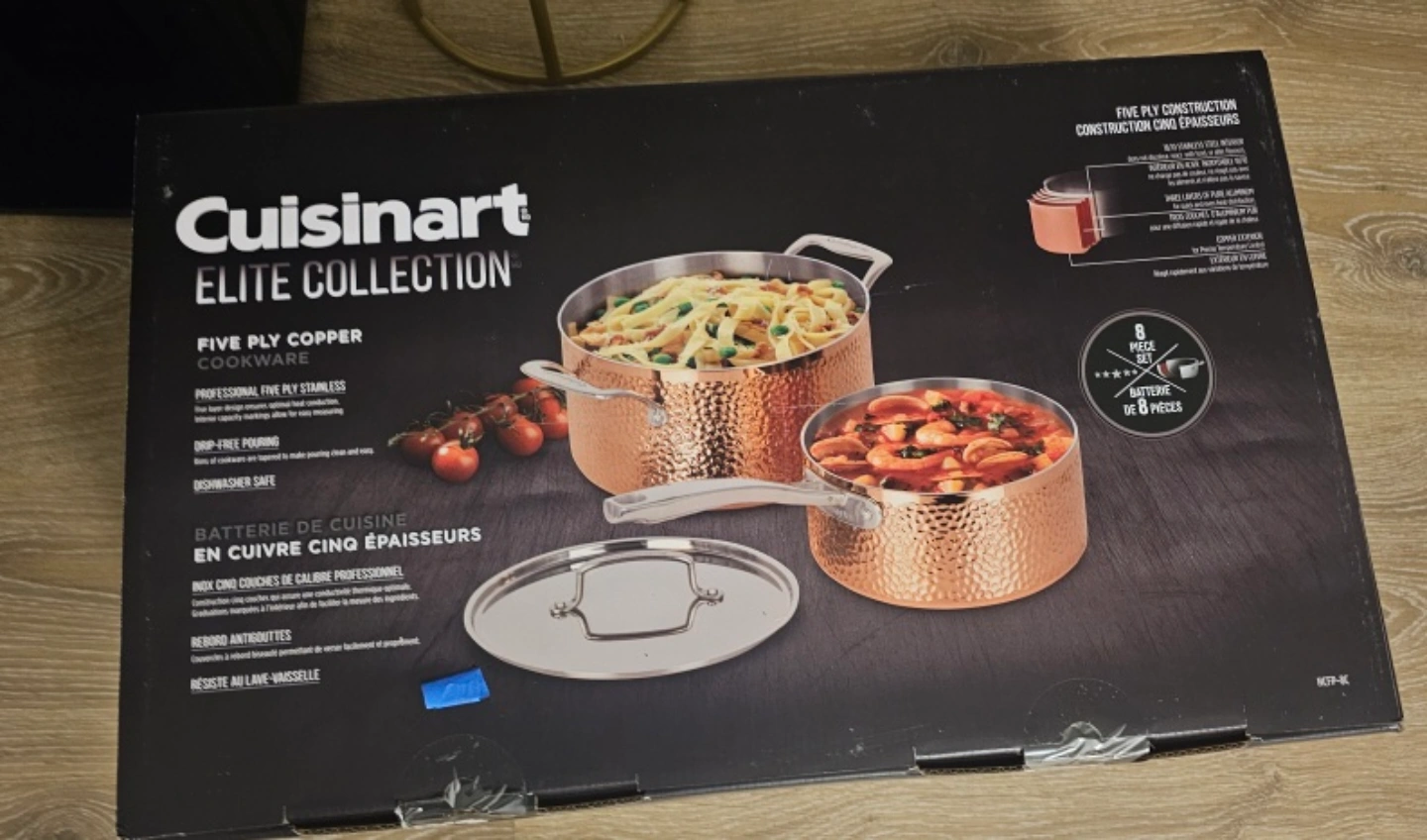 Selling a brand new, unopened Cuisinart Elite Collection 5-Ply Copper cookware set.