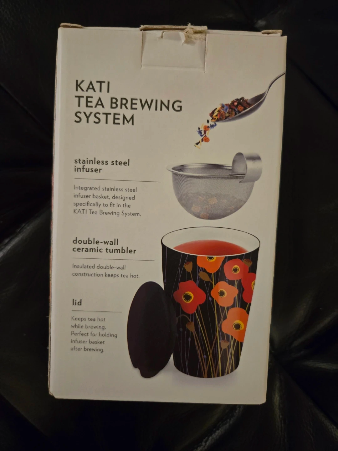 This Kati Tea Brewing System includes a double-wall ceramic tumbler with a lid and a stainless steel infuser.