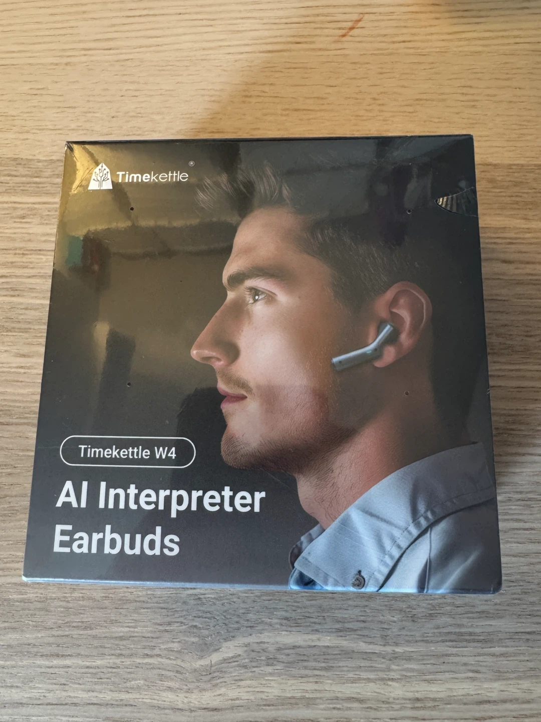Timekettle W4 AI Interpreter Earbuds with bone-conducted interpreting. Real-time translation supports 41 languages offline and 94 languages online with 98% average accuracy. Offers 4 hours duration per charge and 0.2s smooth workflow. Includes original box.