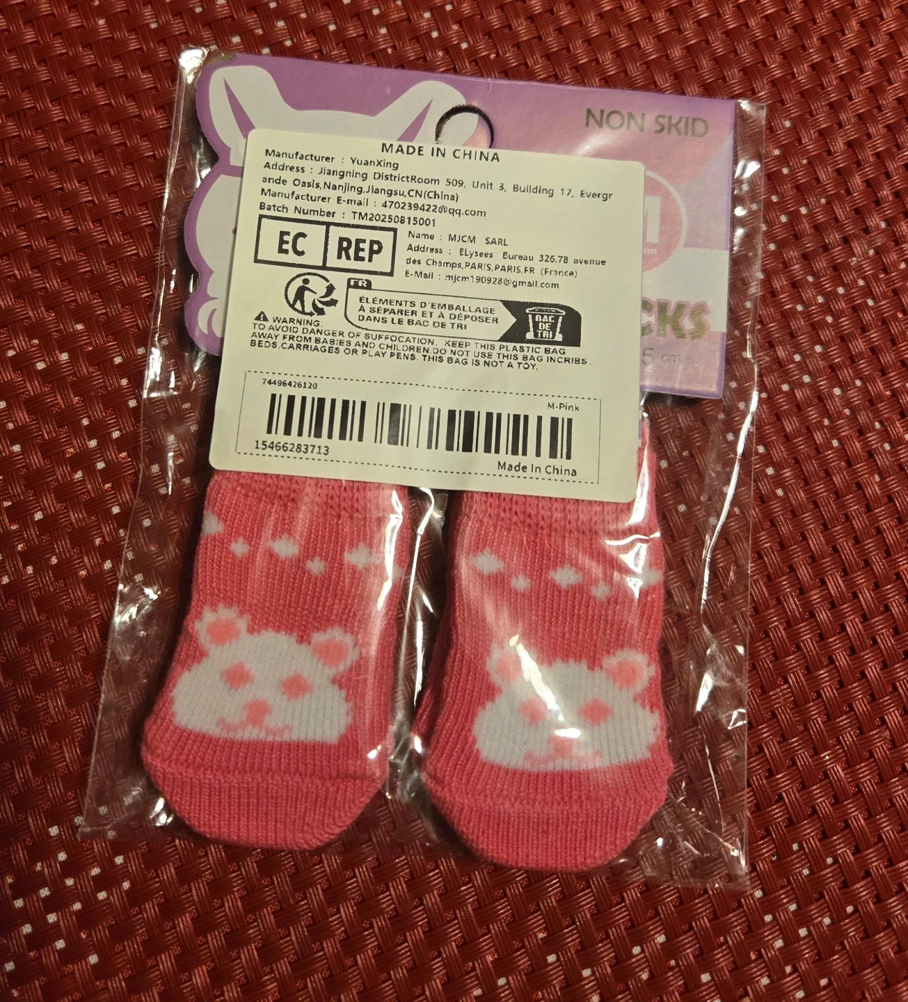 These adorable pink pet socks are perfect for keeping your furry friend's paws warm and protected! They feature a cute paw print design and a non-skid sole for extra grip. Size S.so cute but too tiny for my puppy..pick up SE flats