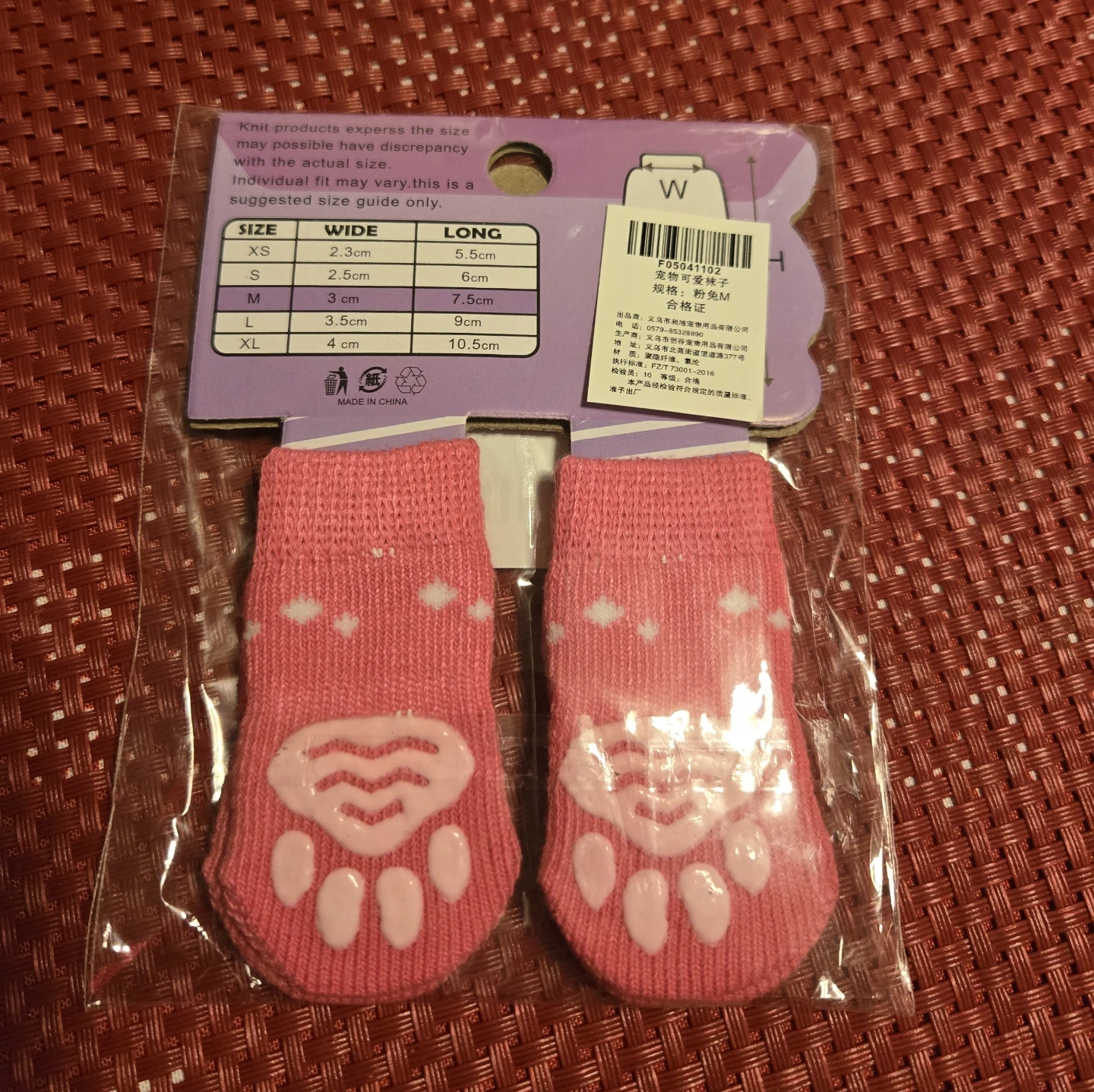 These adorable pink pet socks are perfect for keeping your furry friend's paws warm and protected! They feature a cute paw print design and a non-skid sole for extra grip. Size S.so cute but too tiny for my puppy..pick up SE flats