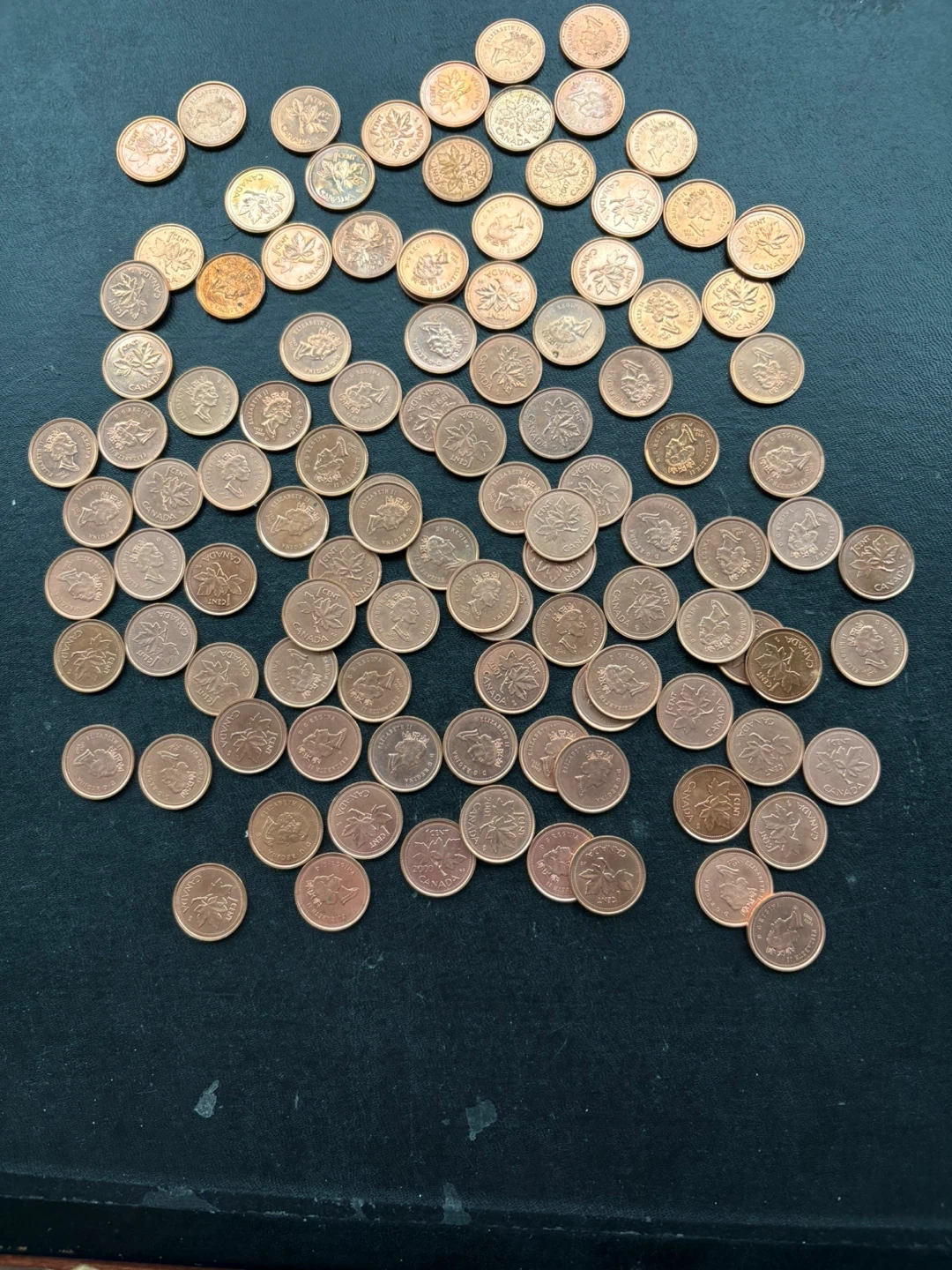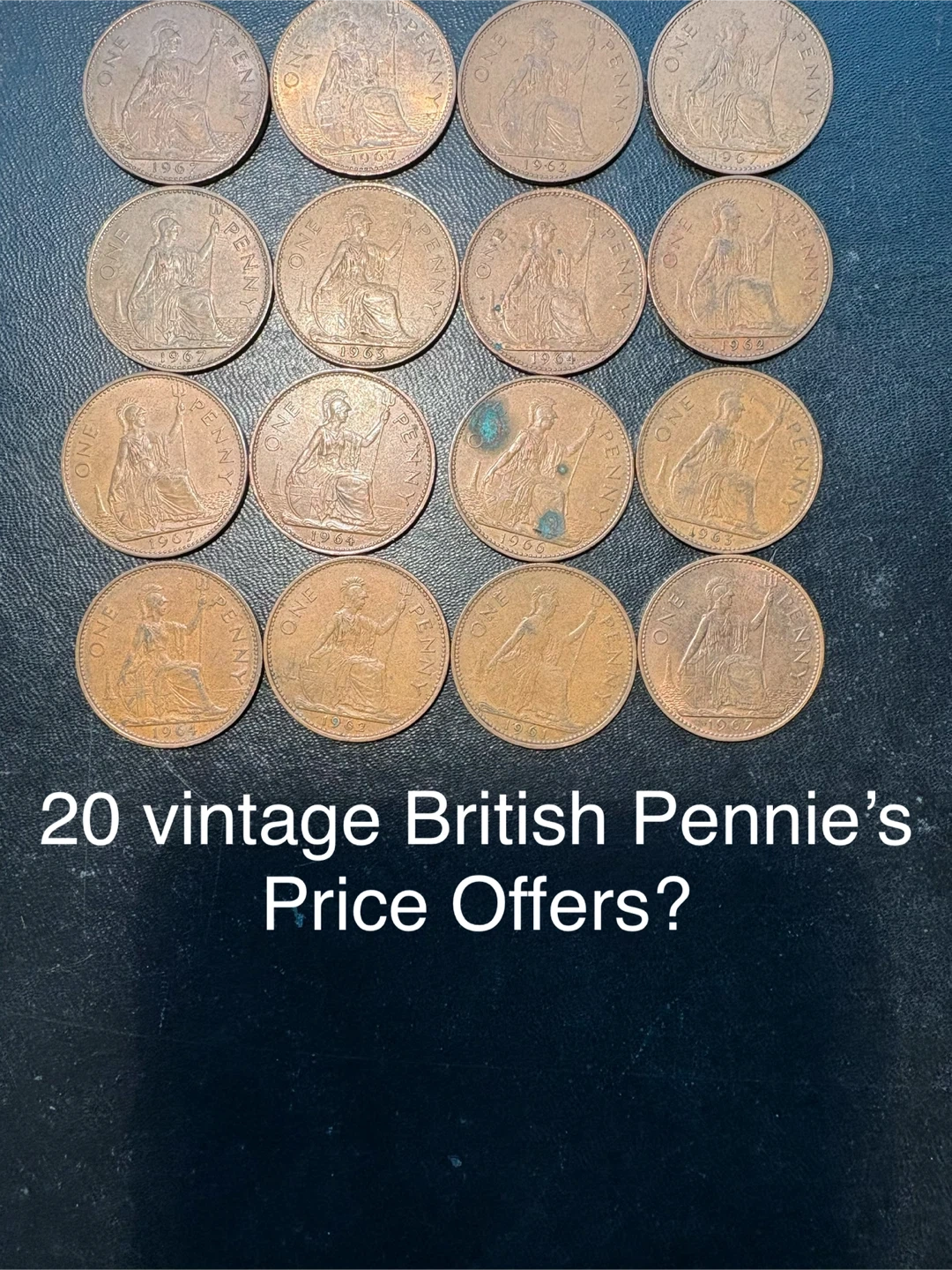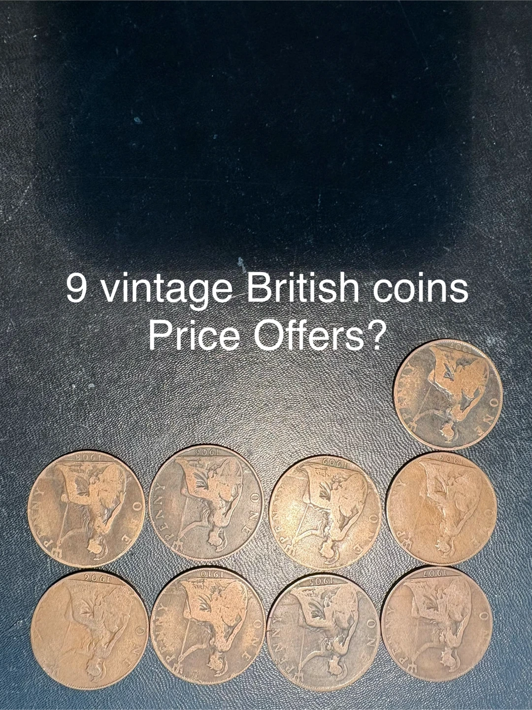 A varied assortment of vintage British pennies and some halfpennies. These coins showcase different years and designs. They're great for collectors or anyone interested in numismatics.