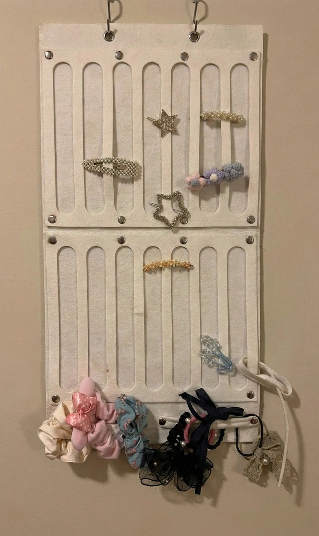 This listing is for a wall-mounted hair accessory display and storage organizer, designed for keeping everyday hair accessories neatly organized and easy to access. Ideal for bedrooms, closets, or dressing areas, especially for girls or women who use hair accessories daily.