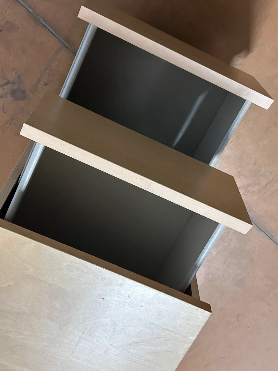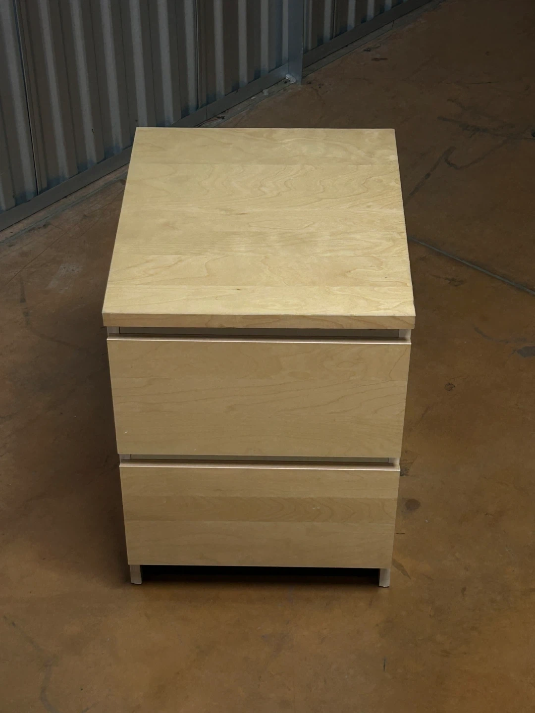 Selling a wooden bedside table with two drawers. It's in great shape and perfect for adding some extra storage next to your bed or in a small space!