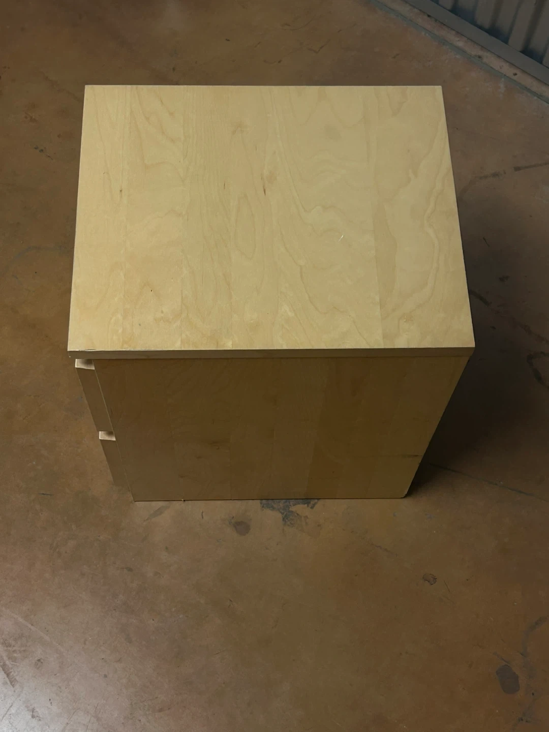 Selling a wooden bedside table with two drawers. It's in great shape and perfect for adding some extra storage next to your bed or in a small space!