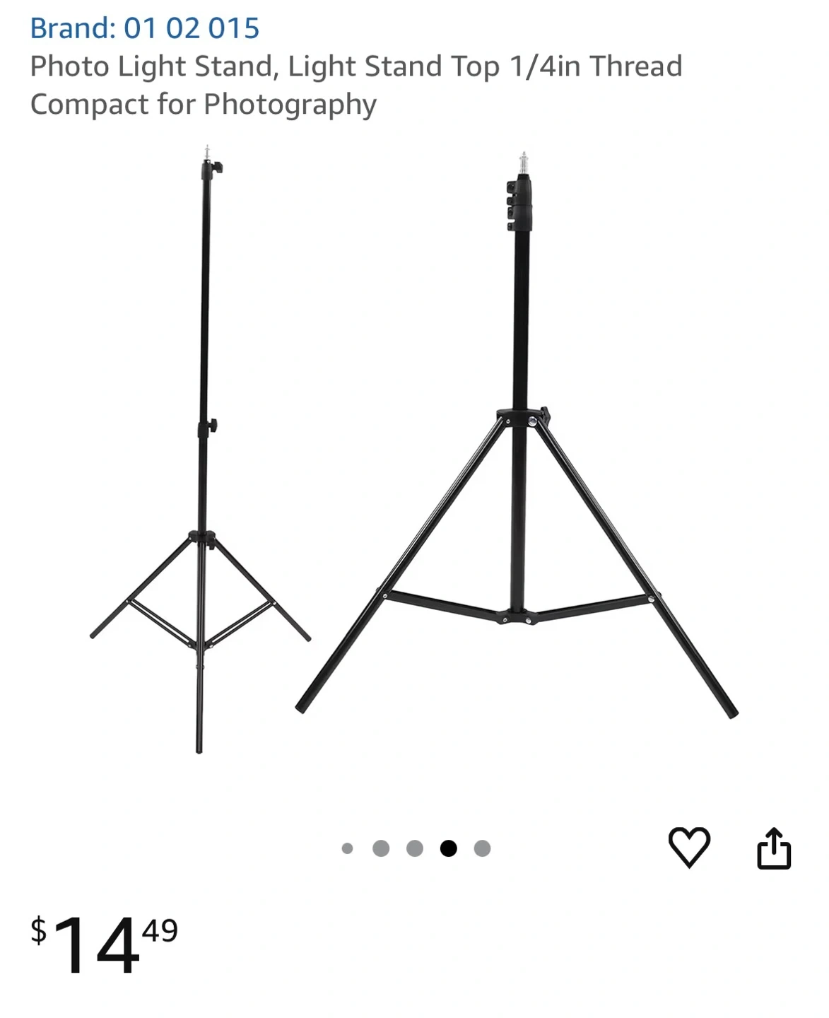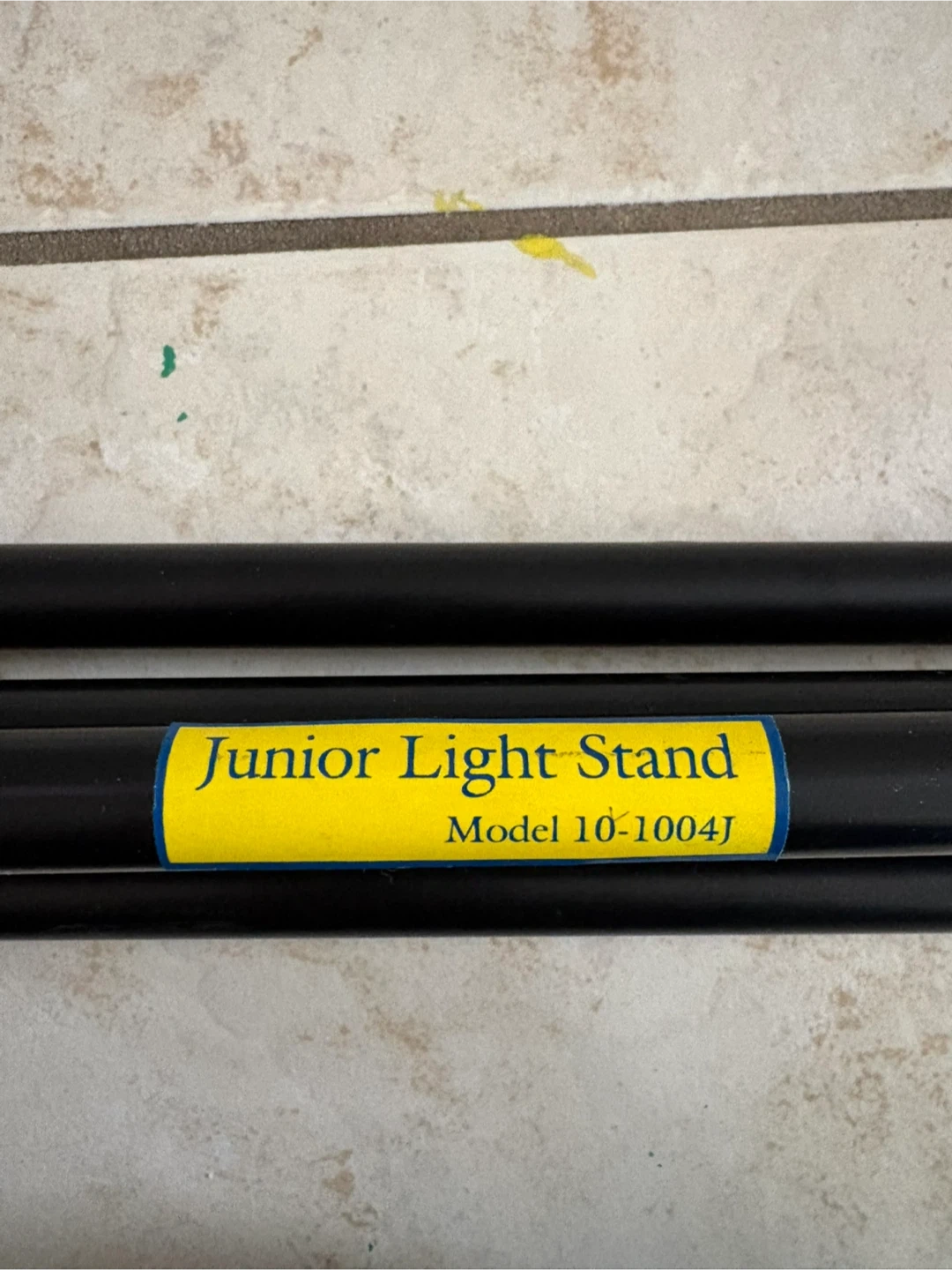 2 x Junior Light Stands, model 10-1004J. It's designed with a 1/4in thread top for photography equipment. It's a compact and portable stand.