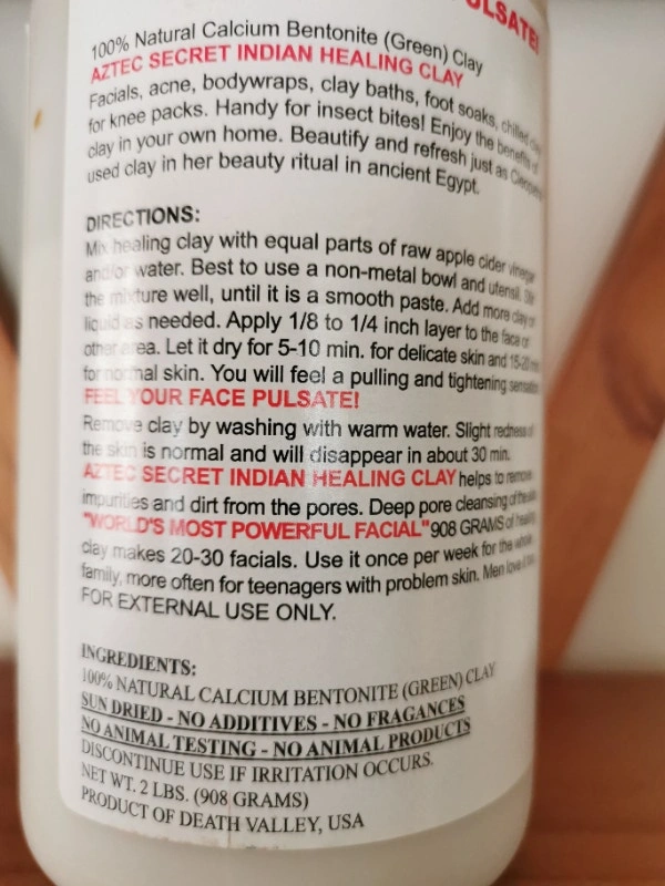 Brand new, un-opened with manufacturer seal 908 grams (2 LB) of Aztec Secret Indian Healing Clay. 100% natural calcium bentonite (green) clay, sun-dried. No additives, no fragrances, no animal testing, and no animal products. Product of Death Valley, USA. Pick up near Yonge St and Regatta Ave in Richmond Hill.
