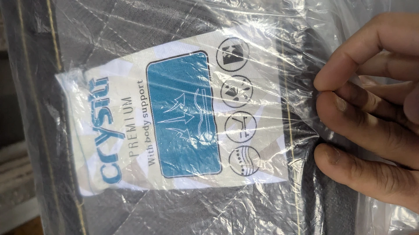 This is a Crystiu Premium mattress with body support. It's designed for comfort. Suitable for a bedroom.