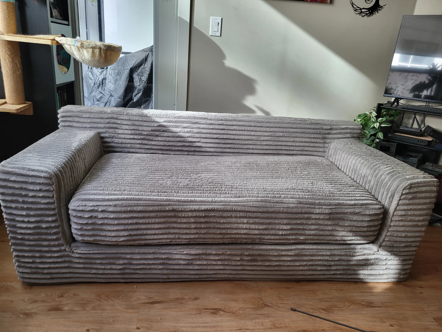 Grey Corduroy Memory Foam Sofa
