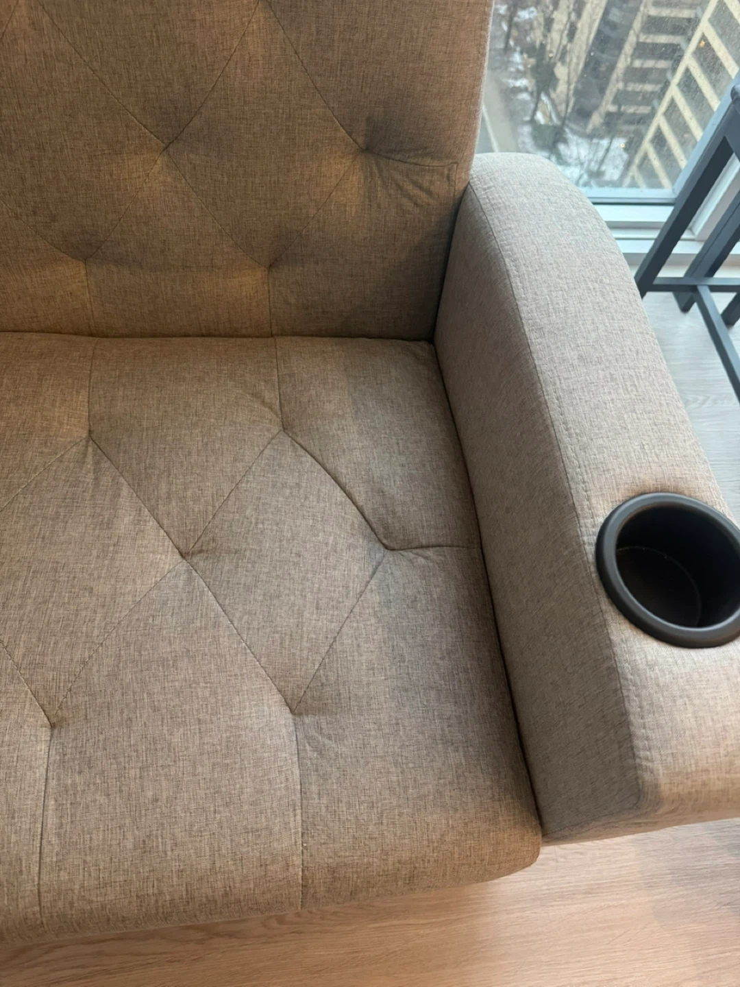 Tufted Sofa with Built-in USB Ports and Cup Holders