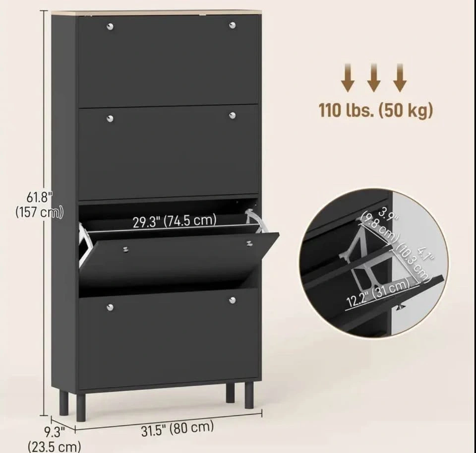 Brand new Slim Black Shoe Cabinet w Multiple Compartments