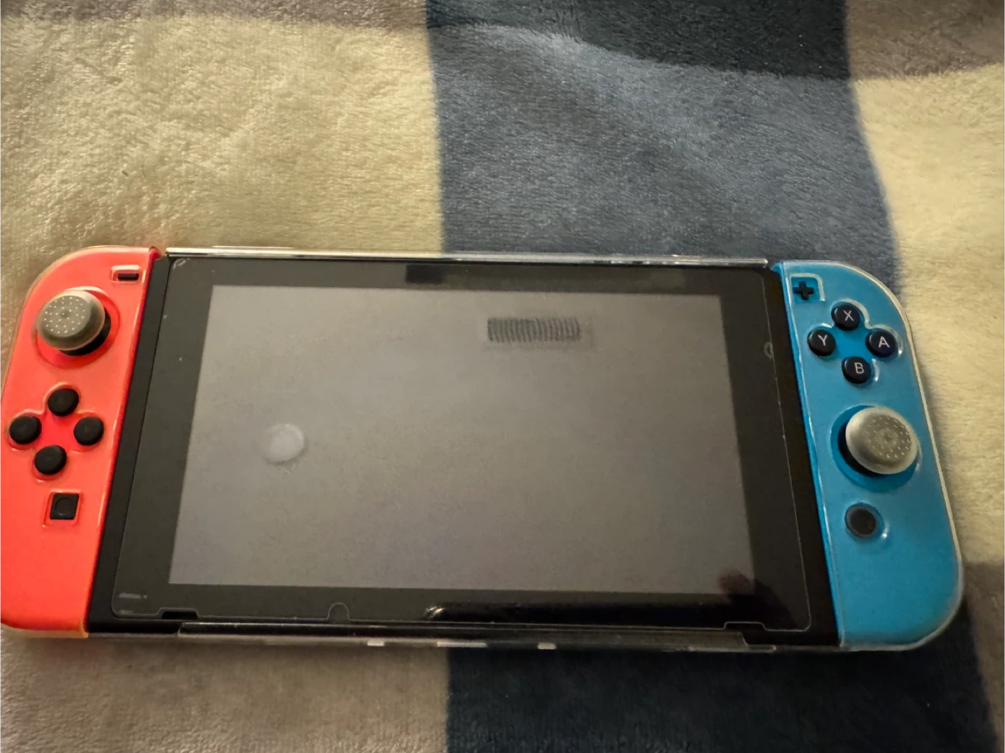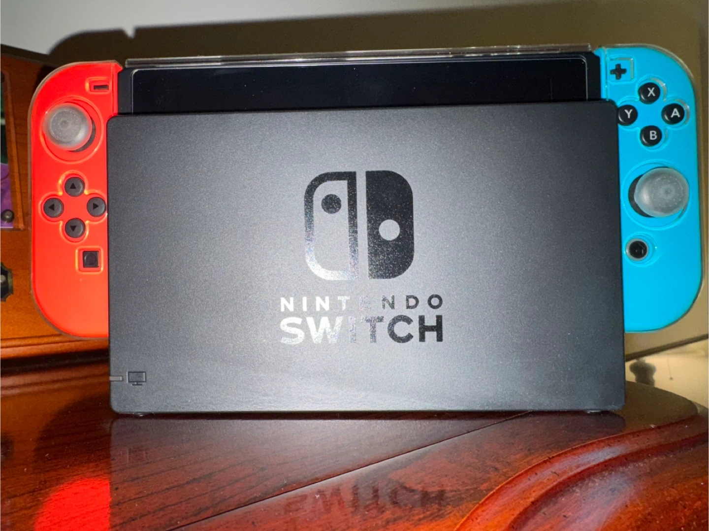 This is a Nintendo Switch console. It comes with neon red and blue Joy-Cons. The console is in good condition and ready for gaming! It has on a screen and console protector on in, it’s in minty condition!