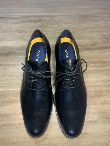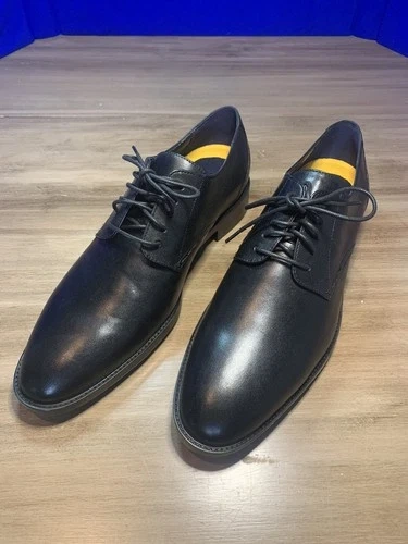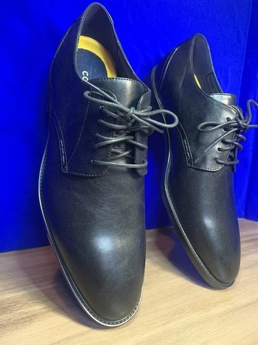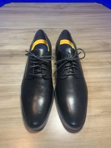 Elevate your wardrobe with these sleek Cole Haan Men's Dress Shoes in size 10.5M. Boasting a classic black Oxford style, they offer a timeless look that's perfect for the modern gentleman. Crafted with a keen eye for detail, these shoes are a testament to Cole Haan's commitment to quality and style. Whether you're headed to the office or a formal event, these shoes provide both comfort and sophistication. The medium shoe width ensures a great fit for most feet, making them a versatile addition to any shoe collection. Step out with confidence in these sharp-looking dress shoes that are as functional as they are fashionable.