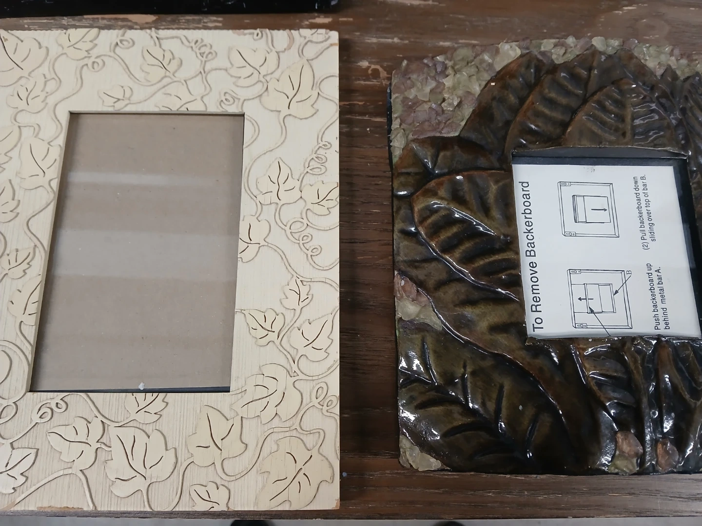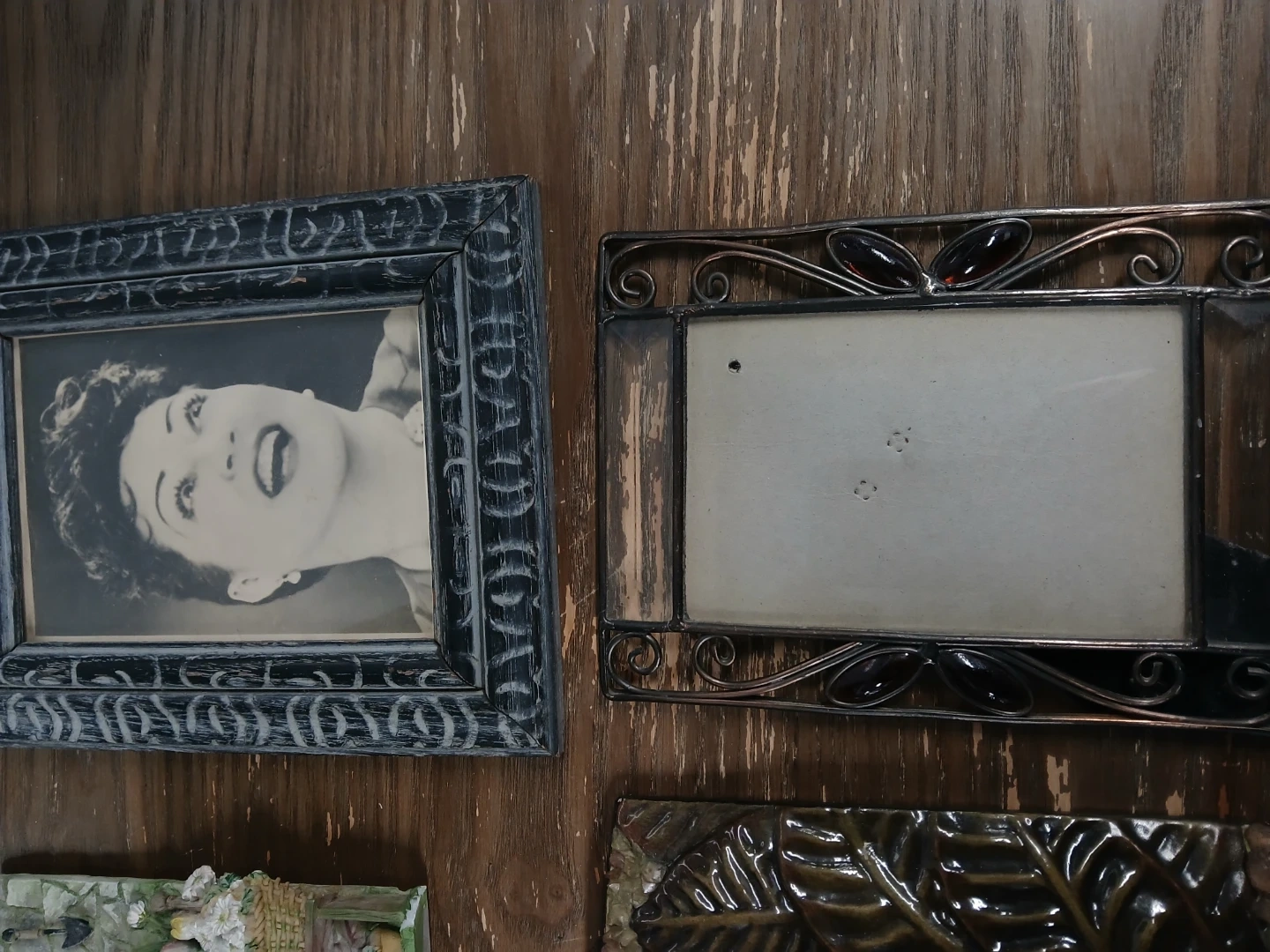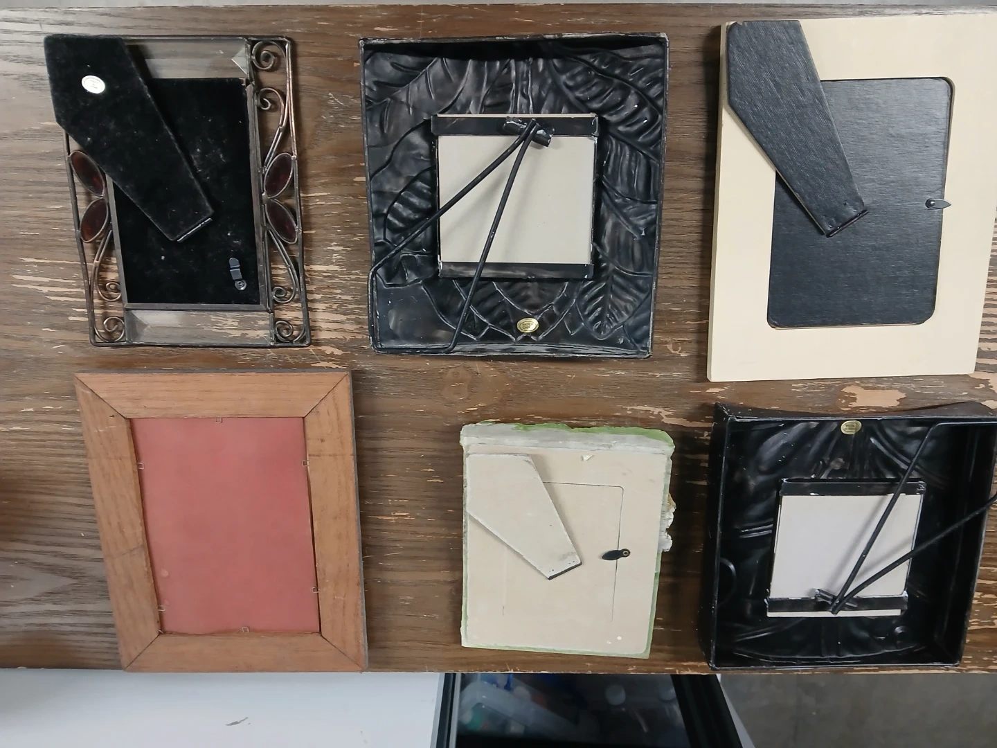 Bundle of six decorative photo frames in various styles and materials. Includes wooden, ceramic, and metal designs. Perfect for displaying your favorite memories!