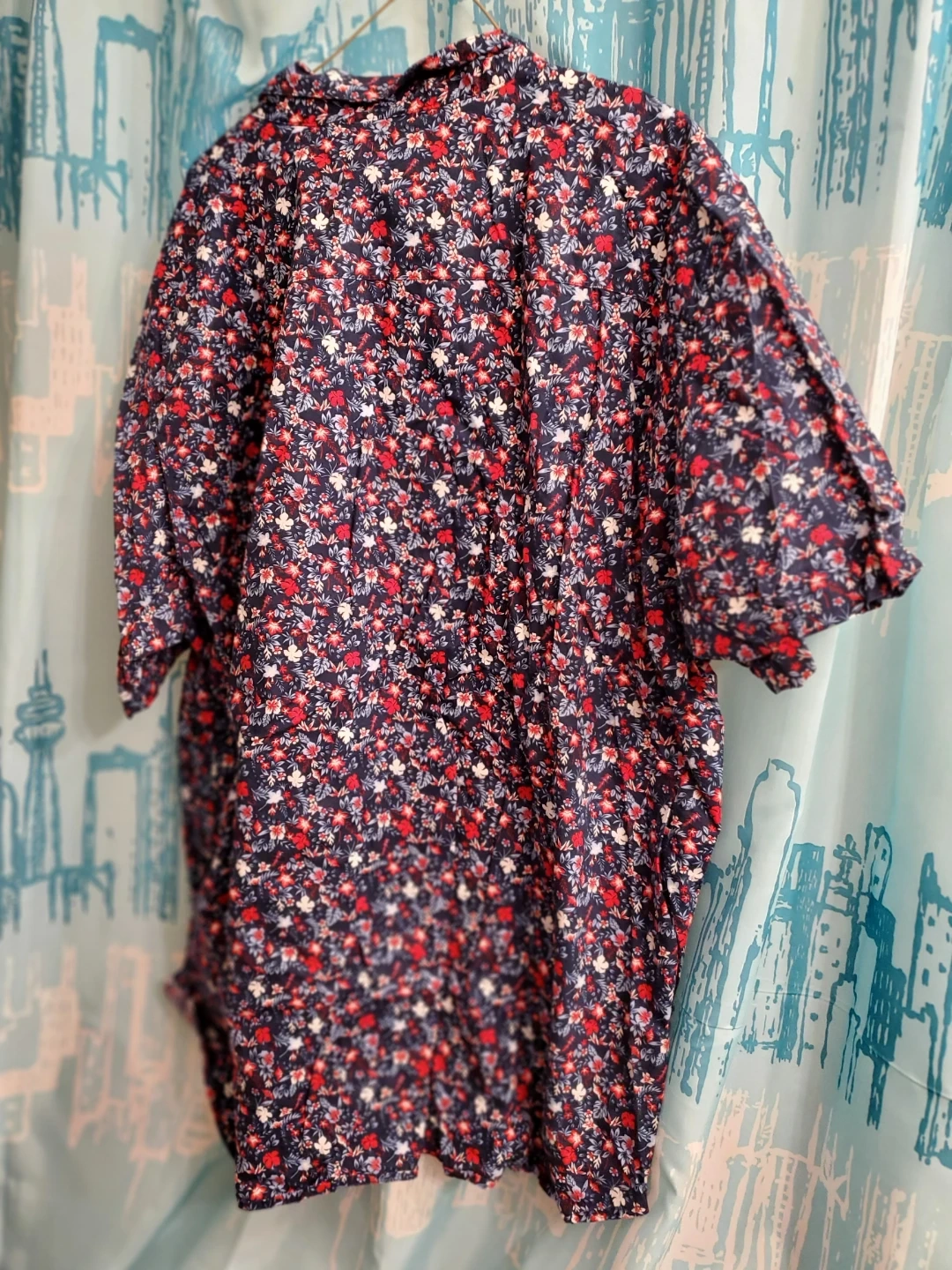 Mens Columbia Sportswear Company shirt with a navy blue floral pattern. It's made of 97.0% cotton and 3.0% elastane. Regular fit. This shirt is great for casual wear. Cedar area pick up.