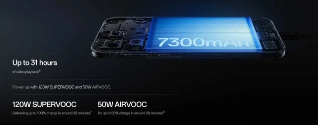 * Battery: 7300 mAh, 120W SUPERVOOC + 50W AIRVOOC