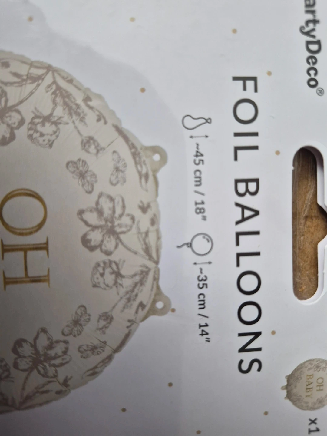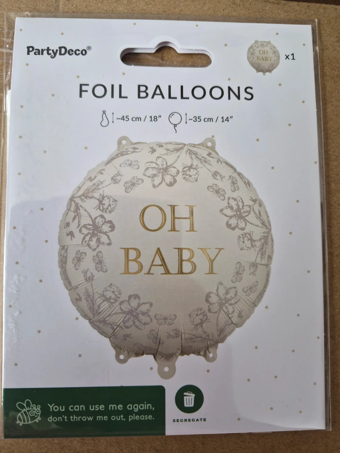 These 'Oh Baby' foil balloons are perfect for a baby shower celebration! The pack includes one balloon, approximately 45 cm / 18 inches when inflated. It's made of foil.