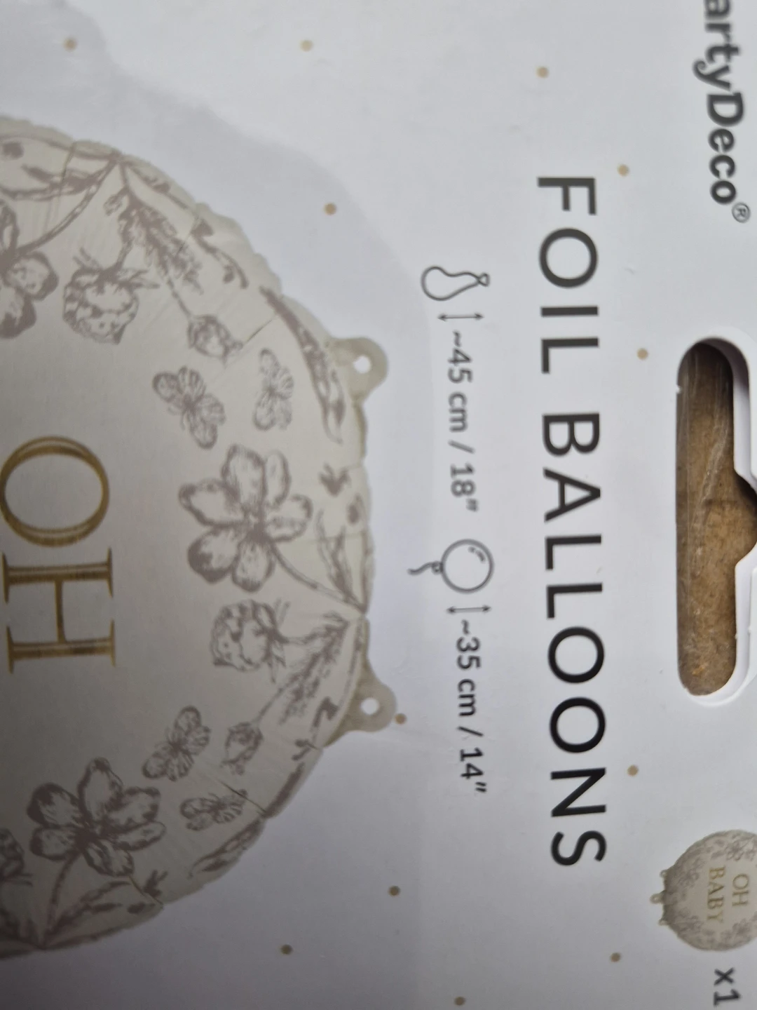 These 'Oh Baby' foil balloons are perfect for a baby shower celebration! The pack includes one balloon, approximately 45 cm / 18 inches when inflated. It's made of foil.