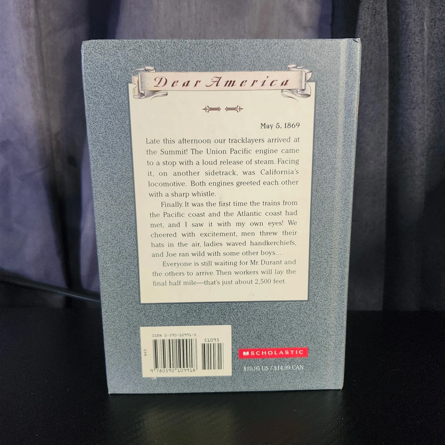 This book is part of the Dear America series. It tells the story of Libby West's diary entries from Utah Territory in 1868. The back cover mentions the completion of the Union Pacific railroad. SIGNED BY AUTHOR!