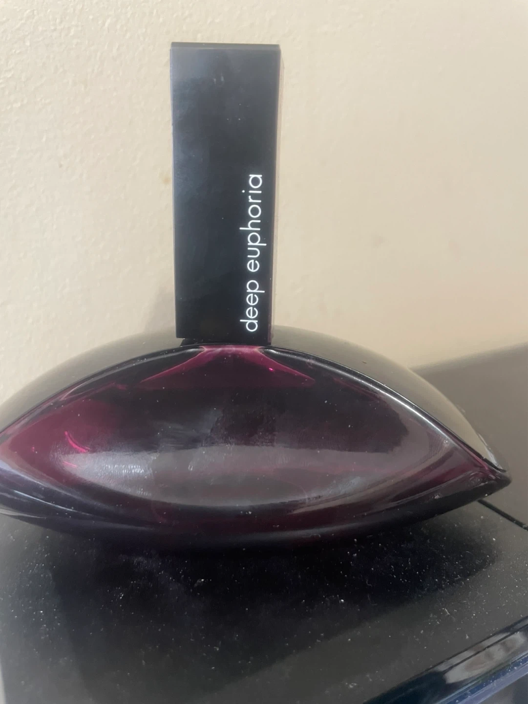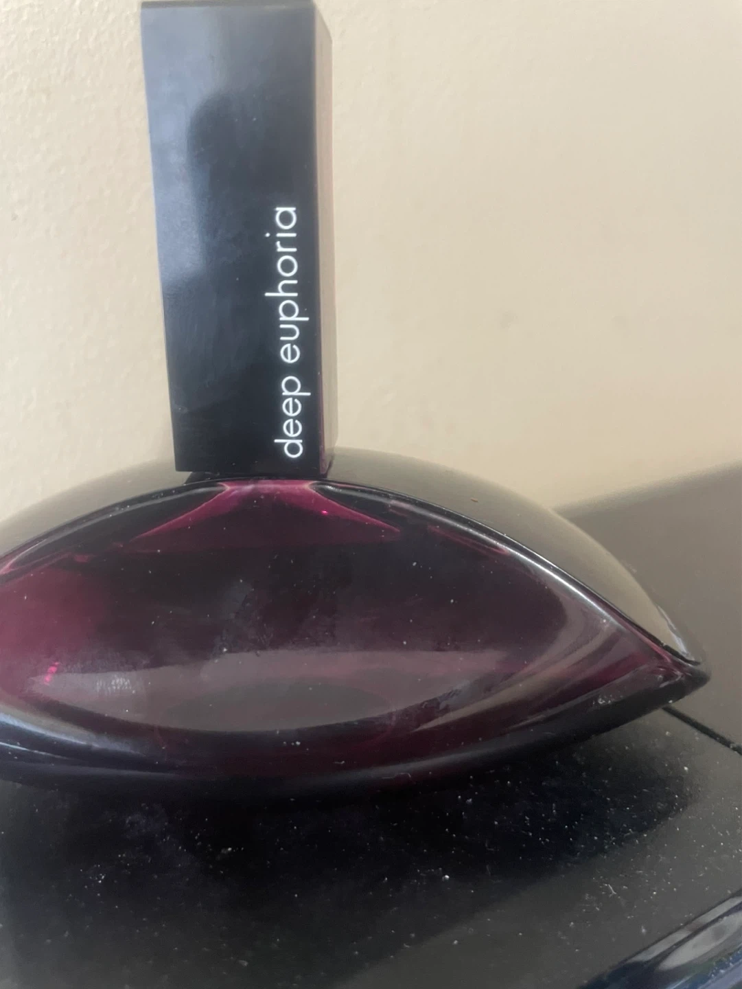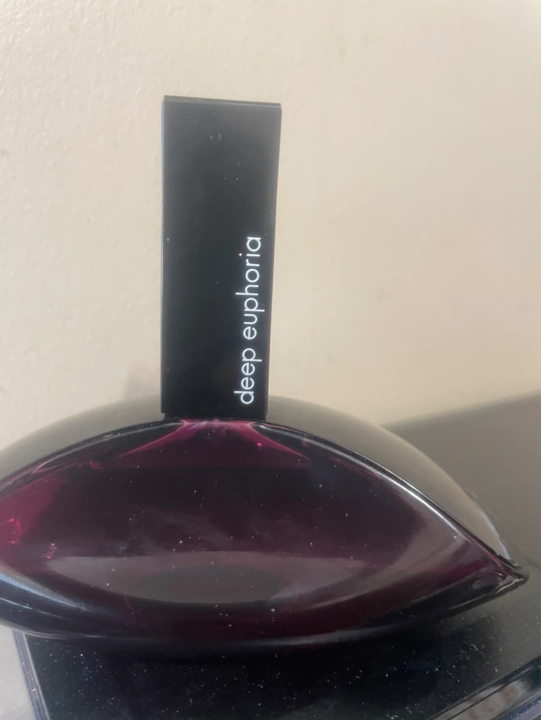 This is Calvin Klein Deep Euphoria Eau de Parfum. A deep purple glass bottle with a black cap. It's a scent for evening wear. 3.4 FL OZ 100 Ml .
