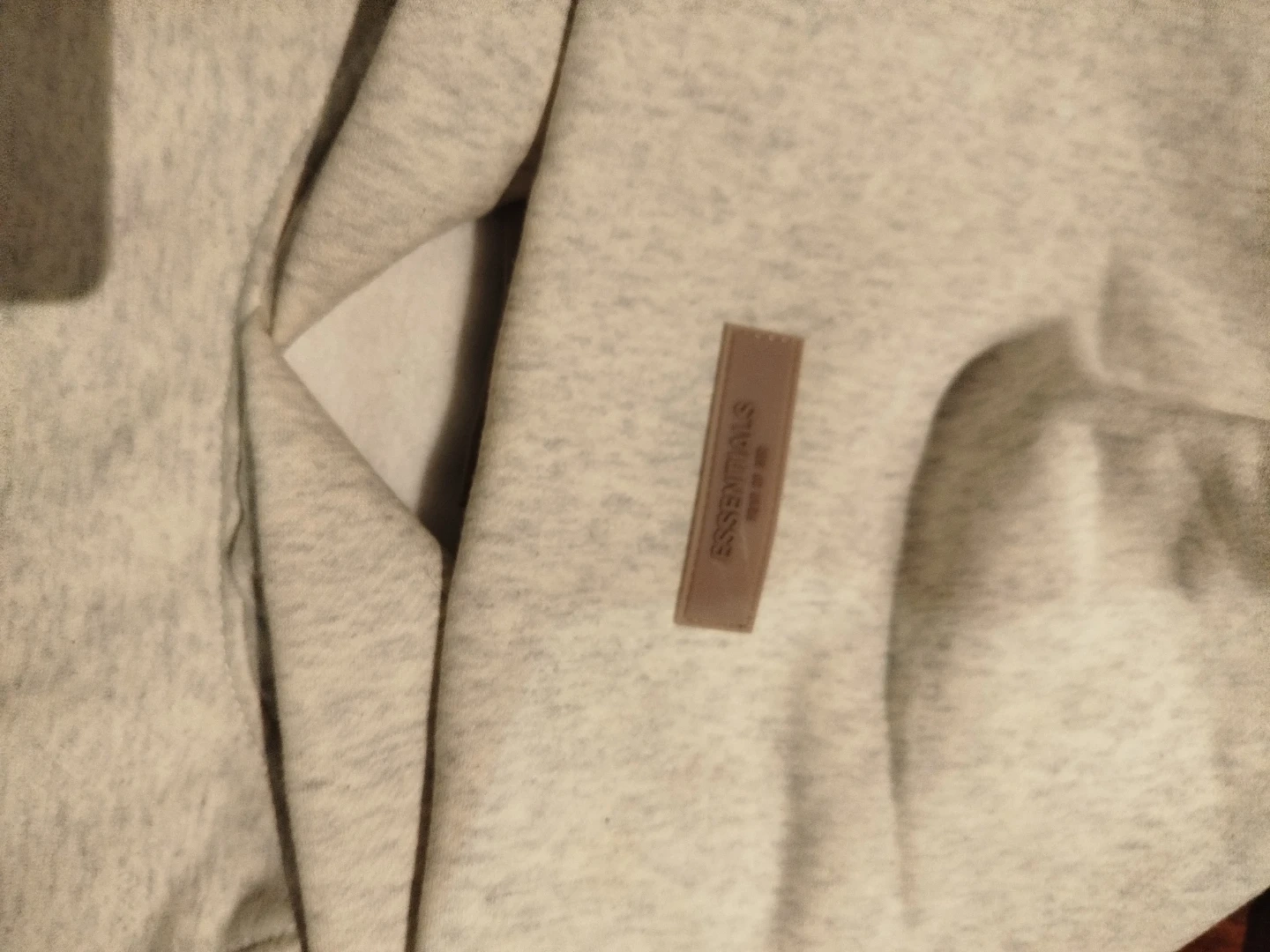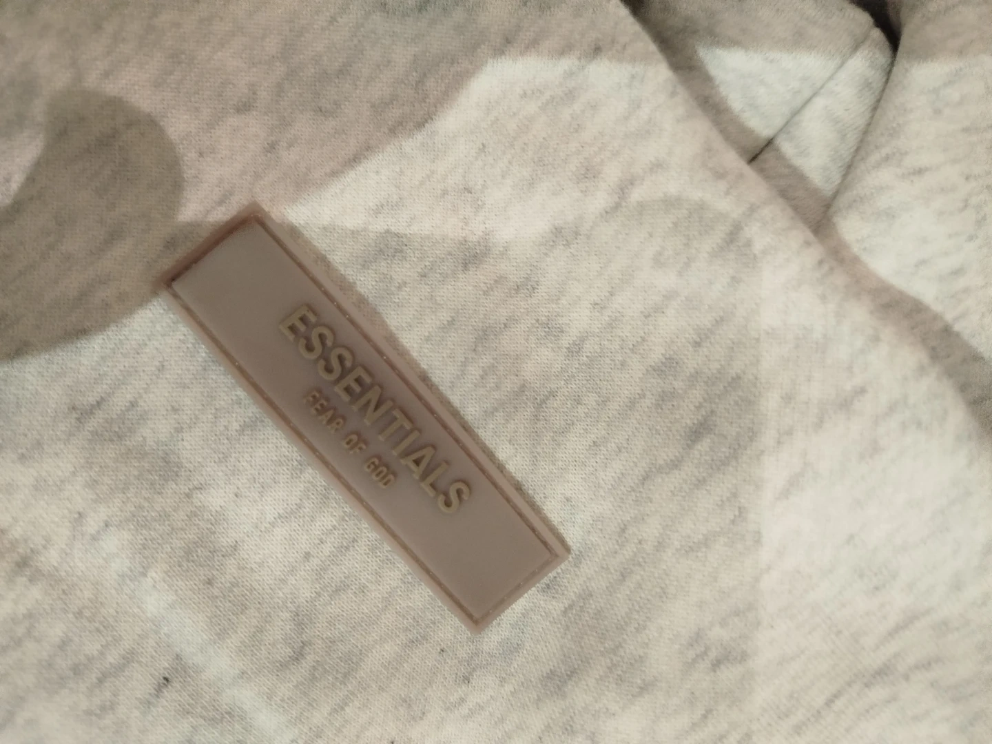 Light grey heathered hoodie with "1977" graphic print on front. Includes a small rubberized Essentials logo patch on the chest. Made from a comfortable blend, perfect for casual wear.