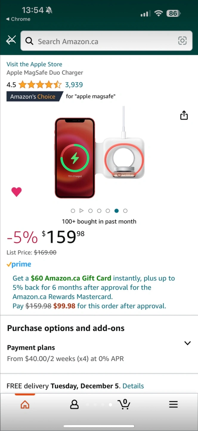 The MagSafe Duo Charger conveniently charges your compatible iPhone, Apple Watch, Wireless Charging Case for AirPods, and other Qi-certified devices.