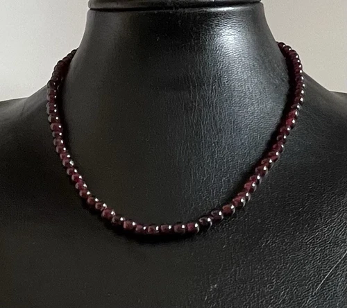 Lovely Vintage Bohemian Garnet Bead Necklace 18 Inches Long